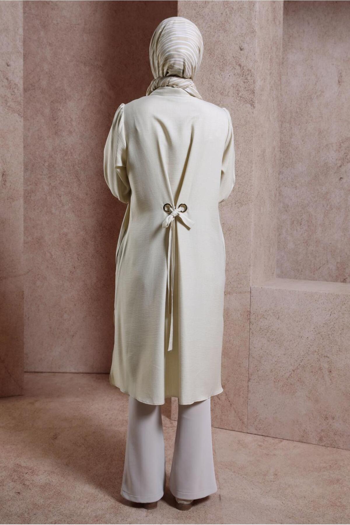 این تونیک که مخصوص مجموعه لباسهای پوشیده طراحی شده است، با جزئیات ظریف و مطابقت آن با استانداردهای لباسهای پوشیده، برجسته است. میتوان آن را به راحتی با رنگ بژ ترکیب کرد و آن را برای ست کردن با رنگهای مختلف ایدهآل میکند.