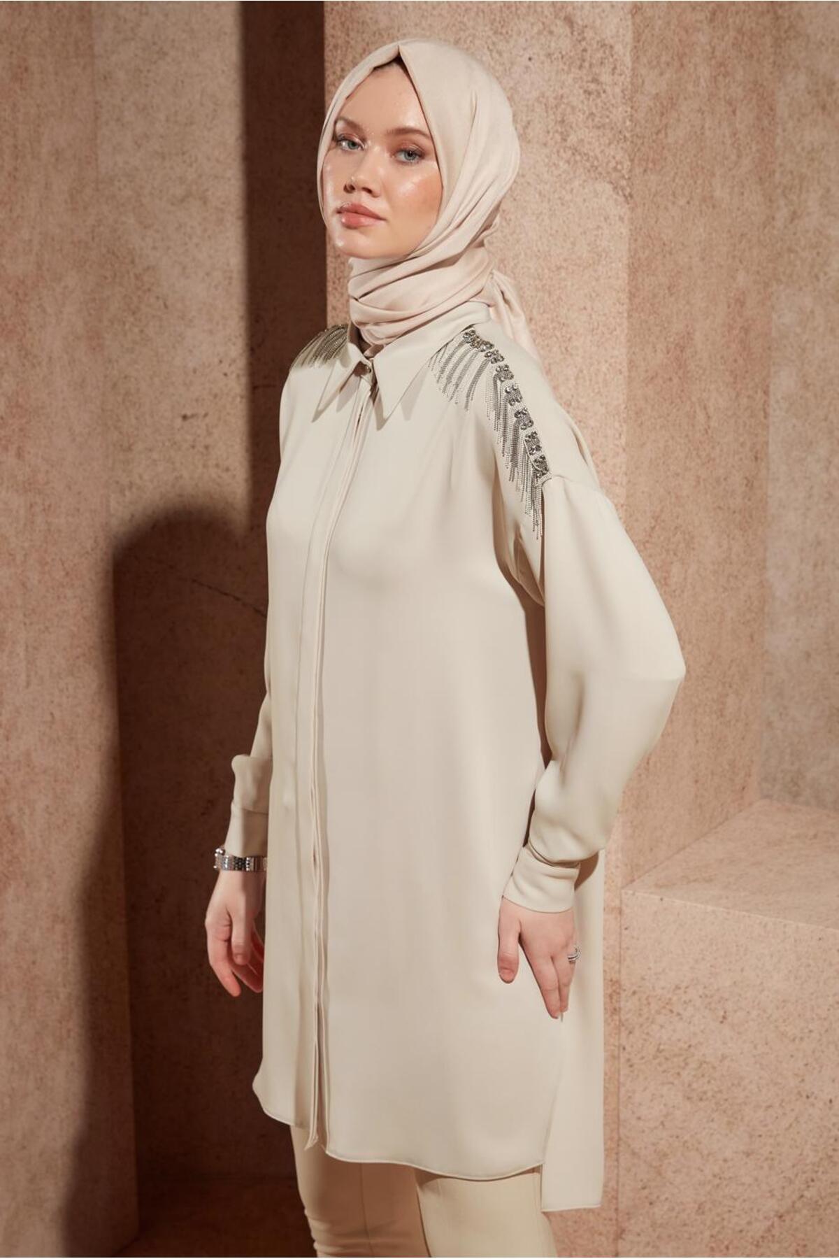 خرید اینترنتی تونیک با جزئیات سلیقهای ۴۴۴۸۲ برند آلوینا Alvina اورجینال از ALVİNA نمایندگی ترکیه