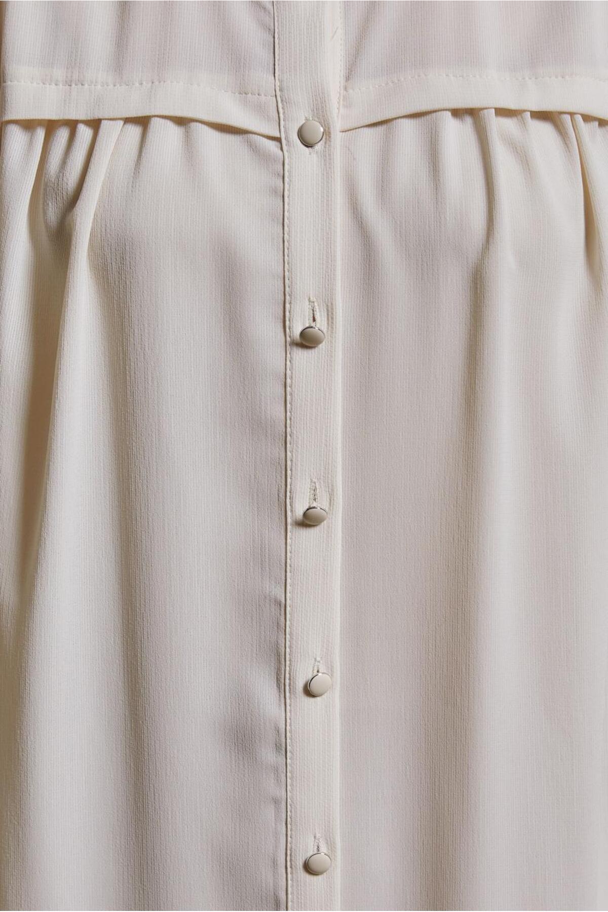 طراحی آستینهای چیندار/چیندار، جزئیات زنانه را برجسته میکند و آزادی حرکت را فراهم میکند.