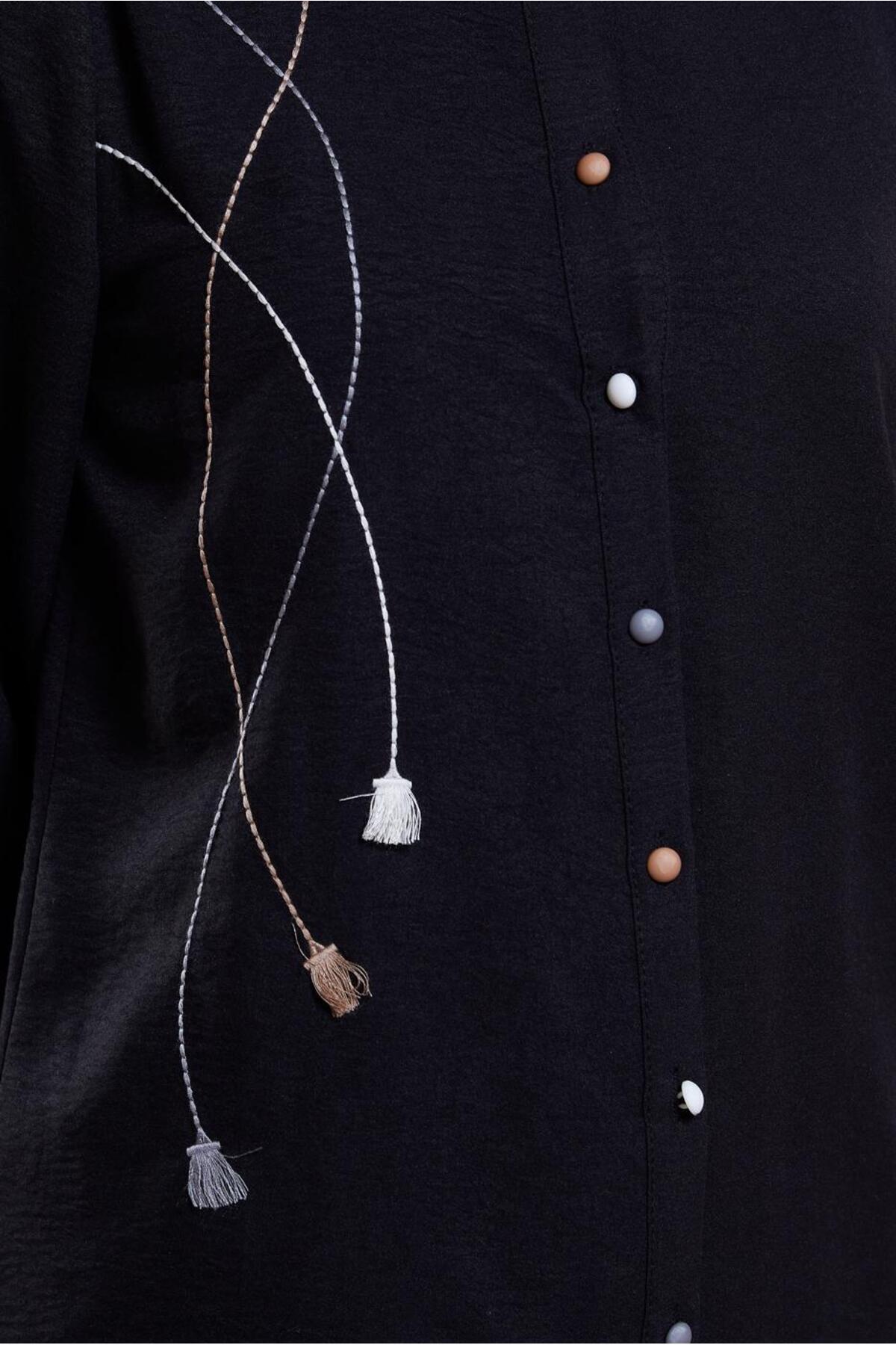– جزئیات یقه پیراهن آن، ظاهری کلاسیک و شیک ارائه میدهد.