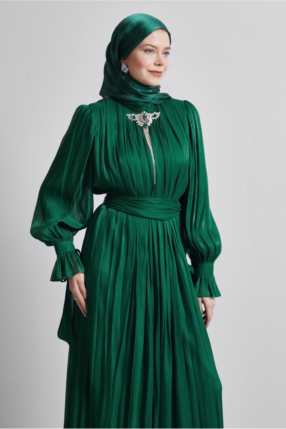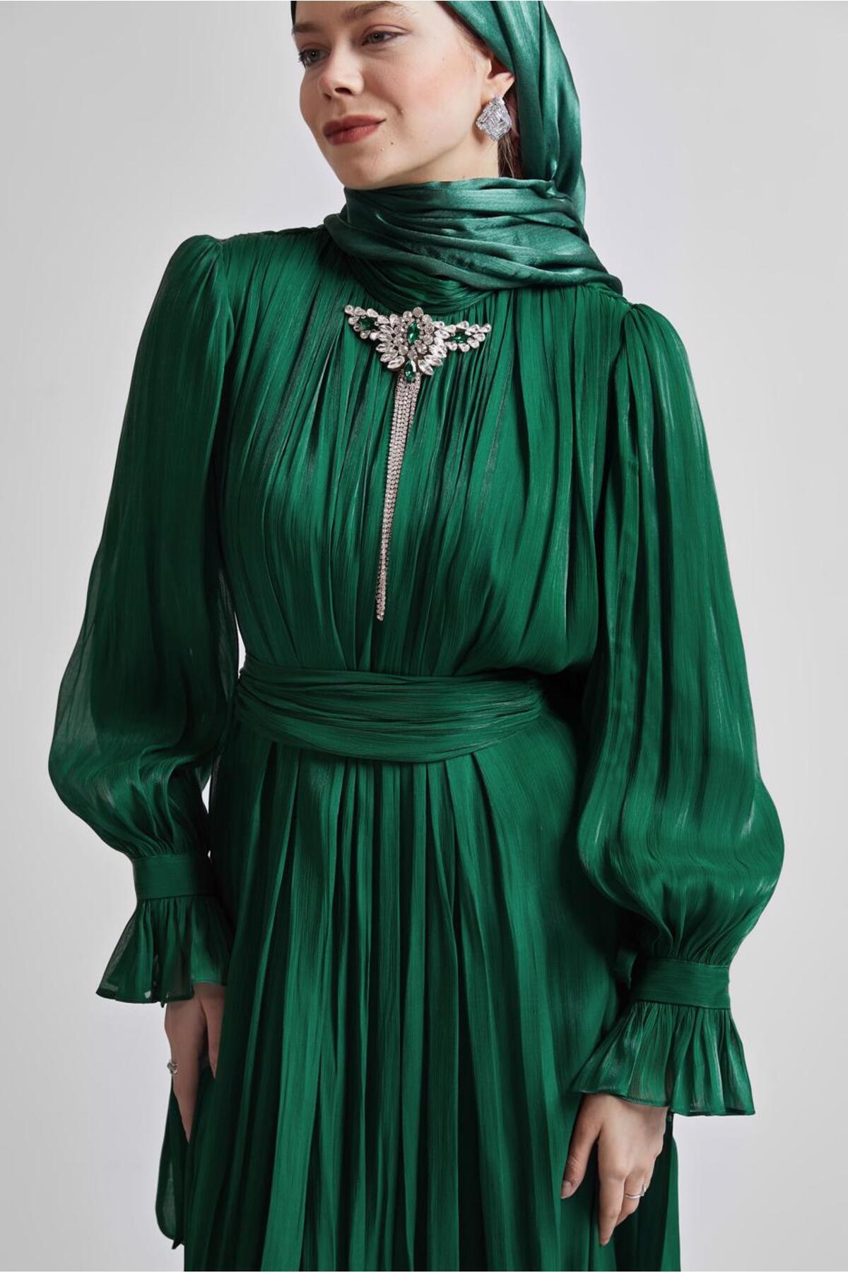 خرید اینترنتی لباس شب با سنجاق سینه کمربنددار ۵۰۵۱۷ برند آلوینا Alvina اورجینال از ALVİNA نمایندگی ترکیه