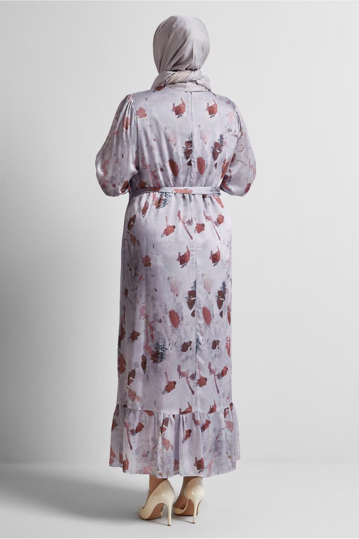 خرید اینترنتی لباس مجلسی طرح دار ساتن کمربنددار کد ۲۰۷۲۷ برند آلوینا Alvina اورجینال از ALVİNA نمایندگی ترکیه