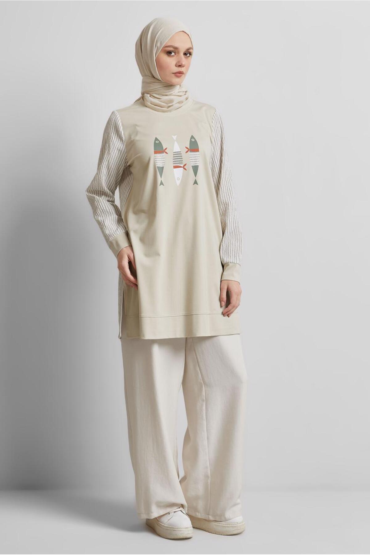 خرید اینترنتی تونیک ورزشی طرح‌دار ۴۵۴۶۸ برند آلوینا Alvina اورجینال از ALVİNA نمایندگی ترکیه