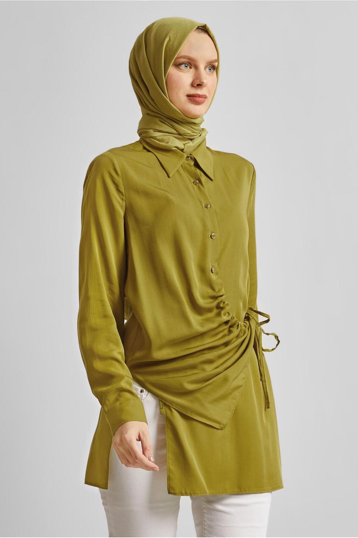 خرید اینترنتی تونیک با جزئیات کراوات ۴۵۳۵۲ برند آلوینا Alvina اورجینال از ALVİNA نمایندگی ترکیه