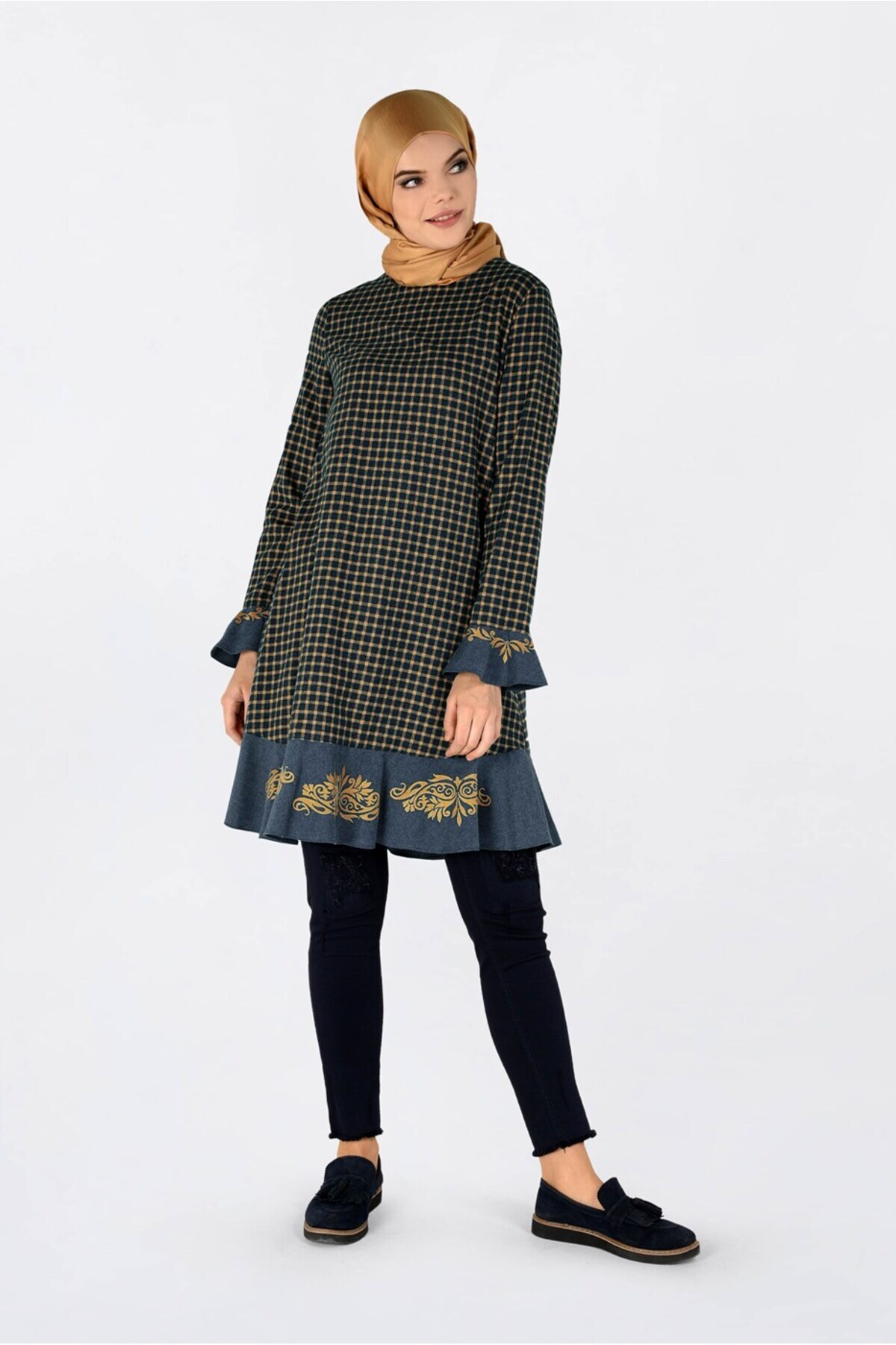 خرید اینترنتی تونیک طرحدار، چیندار و گلدوزیشده طرح دندان شکاری کد ۴۷۹۳ برند آلوینا Alvina اورجینال از ALVİNA نمایندگی ترکیه