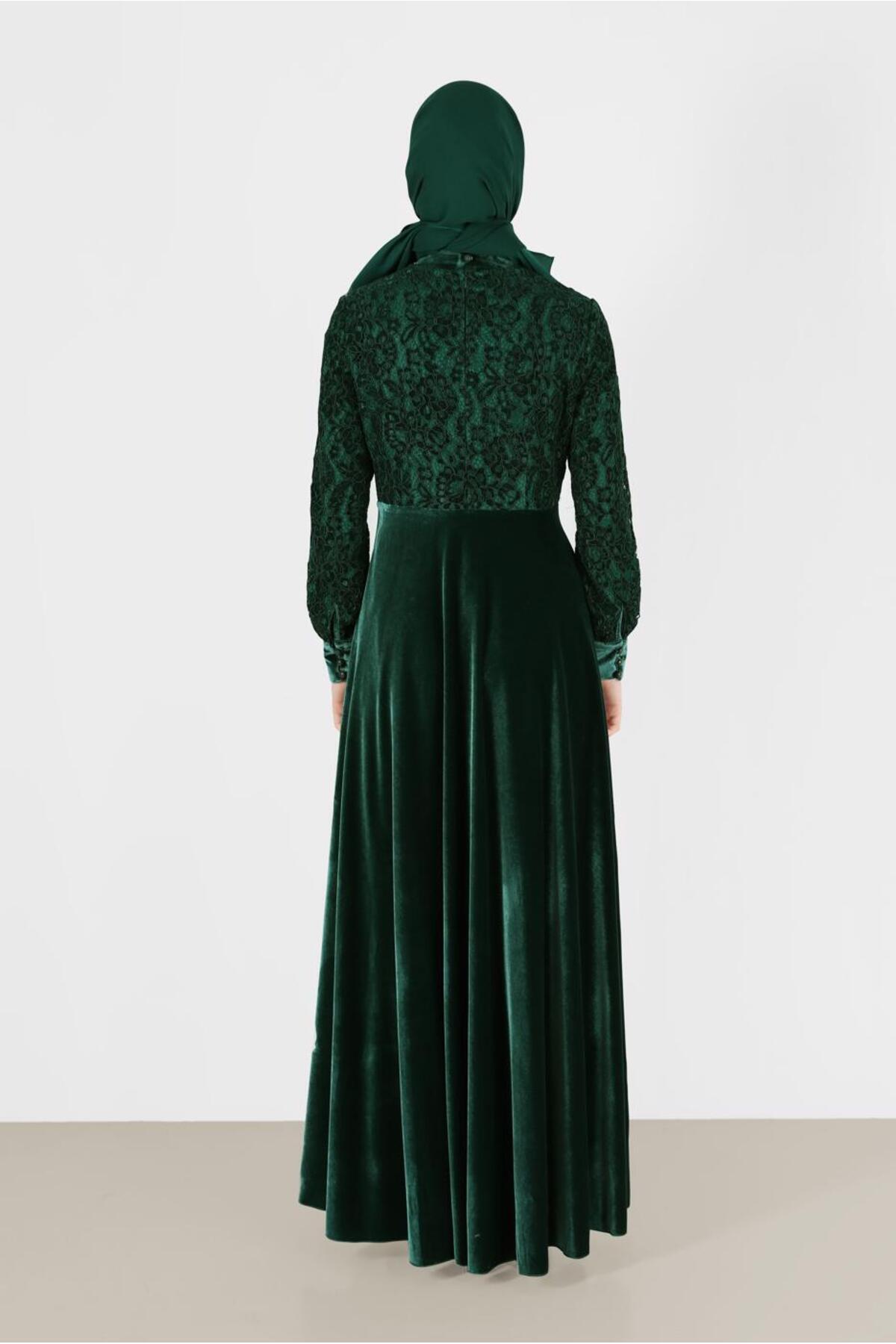 خرید اینترنتی لباس مجلسی یقه بسته مخمل براق گیپور ۴۰۲۳۹ برند آلوینا Alvina اورجینال از ALVİNA نمایندگی ترکیه