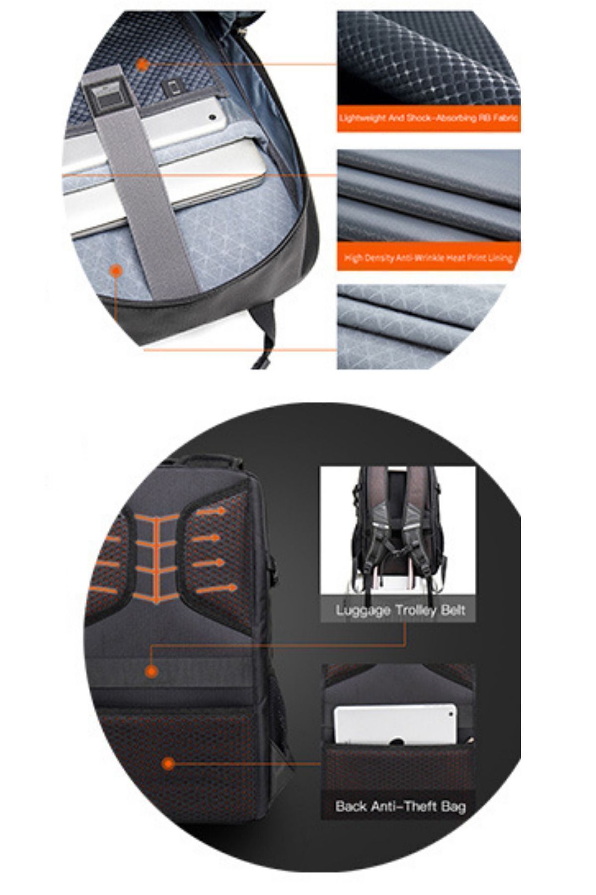 کوله پشتی ممتاز B00387 با جیب ضد آب، جیب ضد سرقت، پورت شارژ USB و محفظه لپ‌تاپ. مردانه راسته | Arctic Hunter B00387