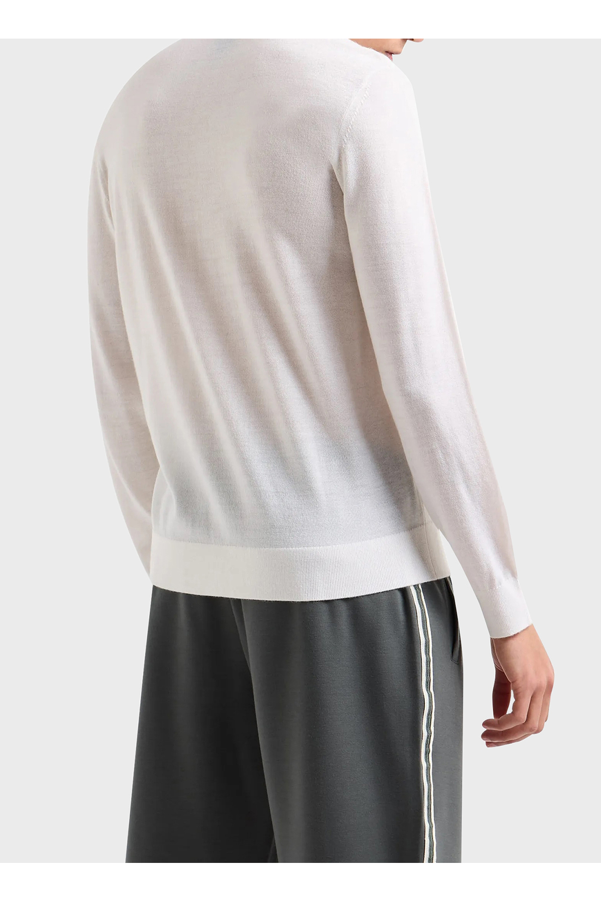 خرید اینترنتی پلیور مردانه یقه گرد طرحدار معمولی سفید مایل به کرم کد 8NZM5A ZM1YZ 1116 برند آرمانی اکسچنج Armani Exchange اورجینال از BOYNER نمایندگی ترکیه