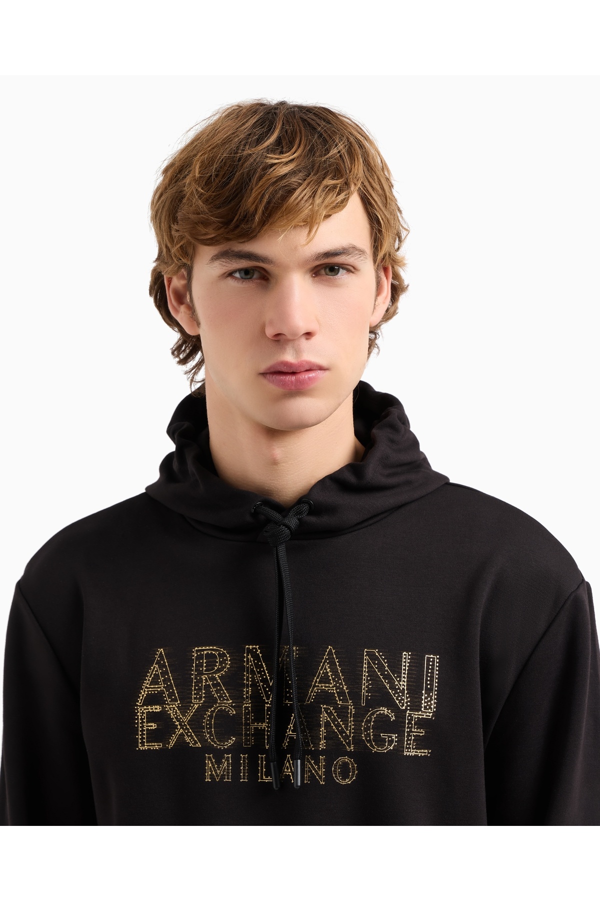 خرید اینترنتی سویشرت مردانه طرح Contrast Logo، آستین بلند، کلاهدار، نخی، مشکی، سایز معمولی، XM000332 AF12269-UC0 برند آرمانی اکسچنج Armani Exchange اورجینال از Wejaar نمایندگی و فروشگاه معتبر ترکیه
