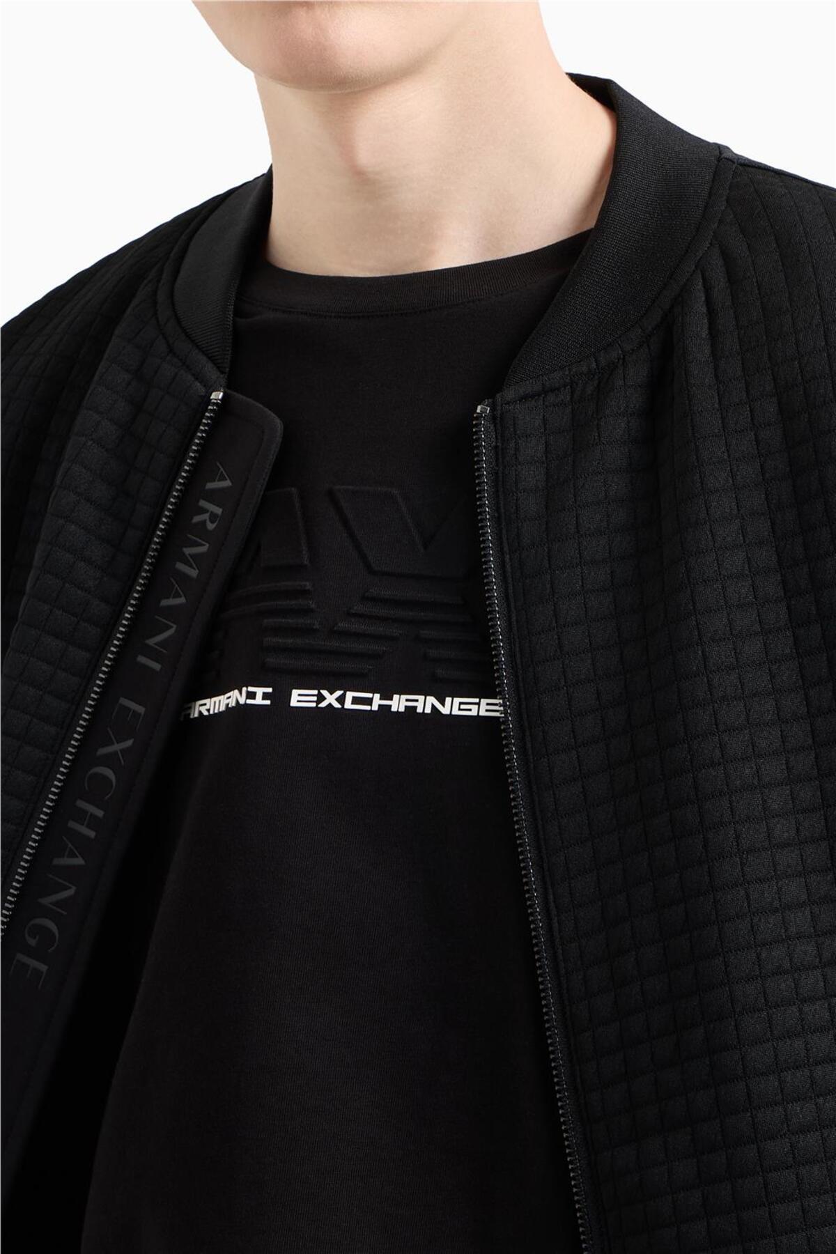 خرید اینترنتی تیشرت مردانه آستین کوتاه یقه گرد مشکی با جزئیات لوگوی برجسته روی سینه XM000544 AF برند آرمانی اکسچنج Armani Exchange اورجینال از BRANDYS نمایندگی ترکیه