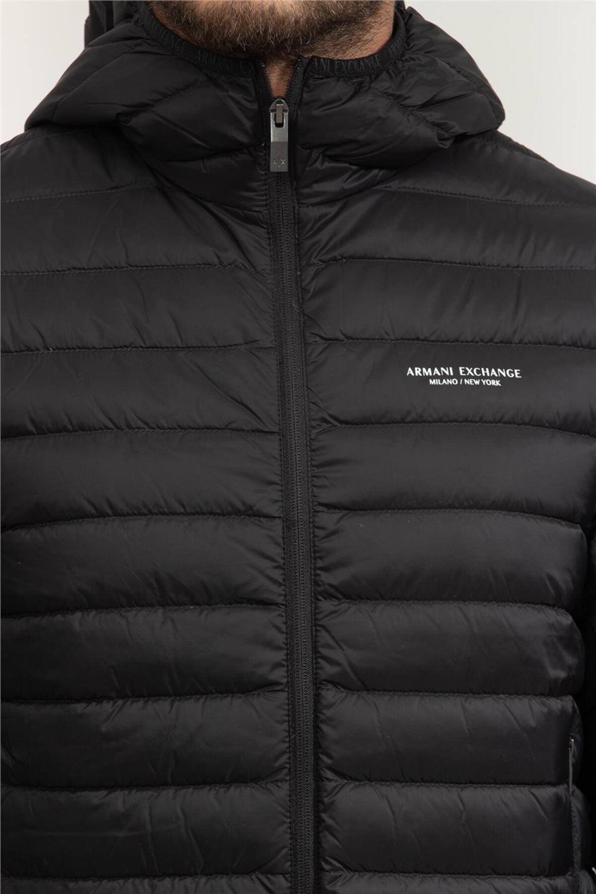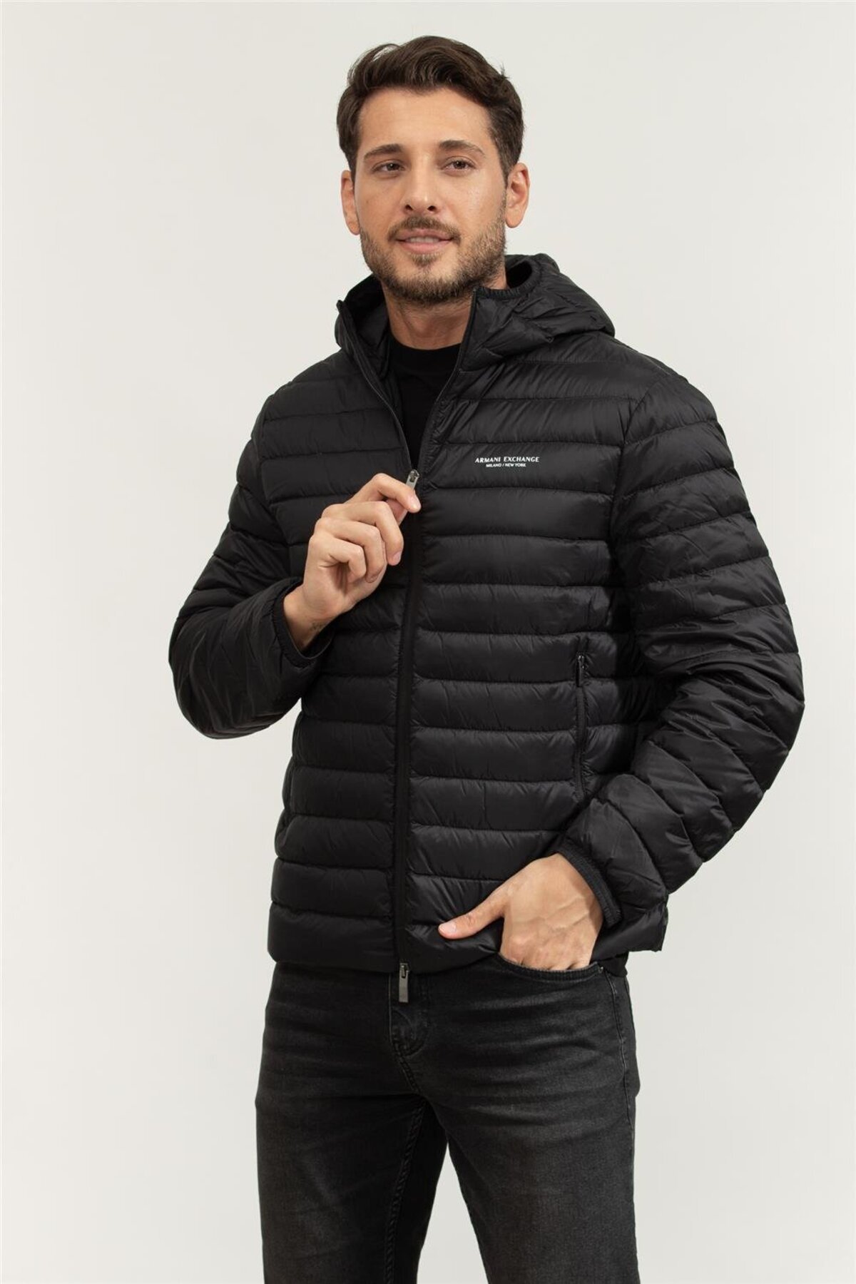 خرید اینترنتی کاپشن پفی مردانه تمام سایز کلاه دار با لوگو – مشکی برند آرمانی اکسچنج Armani Exchange اورجینال از BRANDYS نمایندگی ترکیه
