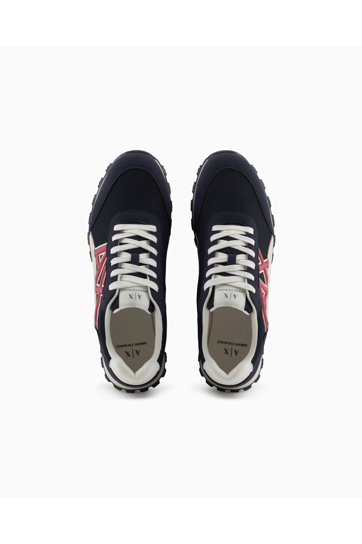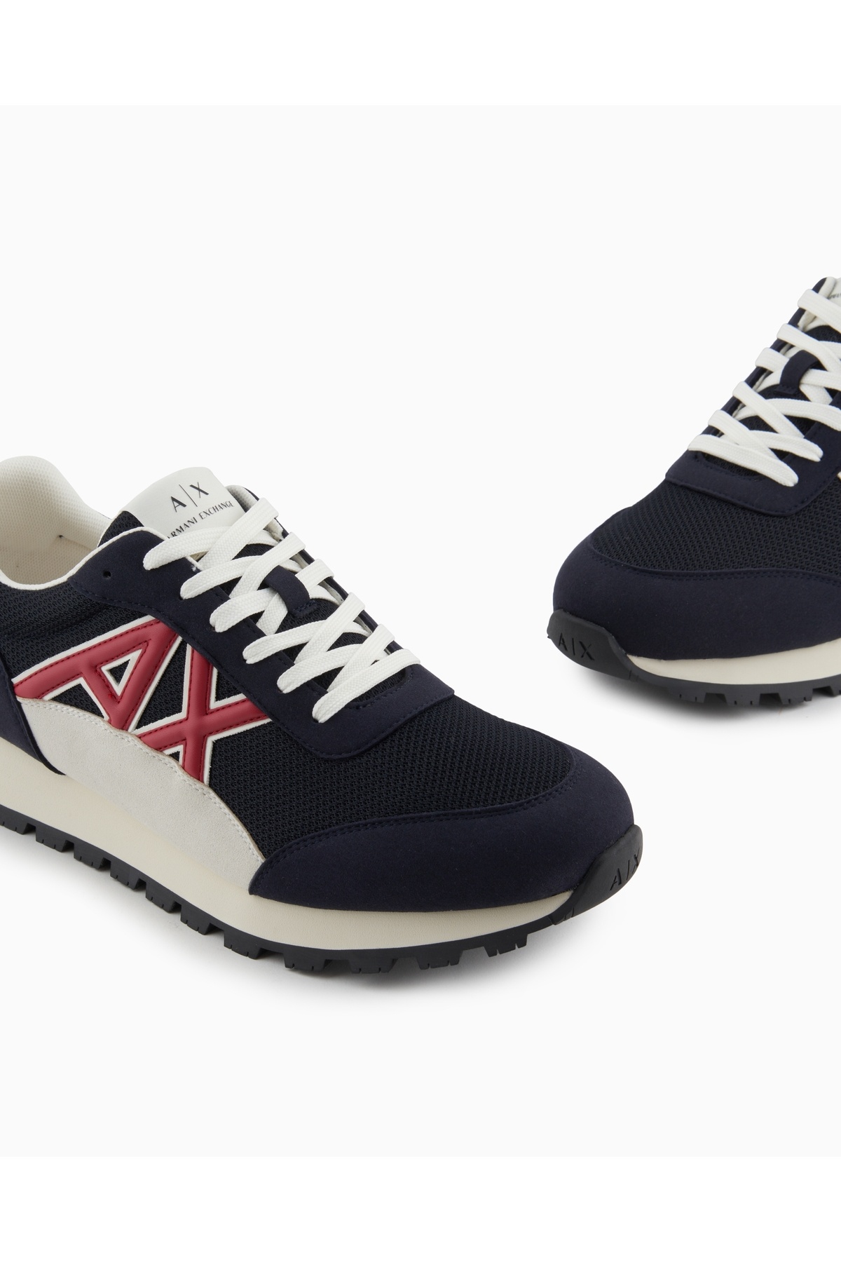 خرید اینترنتی کفش‌های مردانه راحت و پاشنه بلند جیر و توری سرمه‌ای با جزئیات و لوگوی AX، مدل XUX263 XV942-U661 برند آرمانی اکسچنج Armani Exchange اورجینال از Wejaar نمایندگی ترکیه