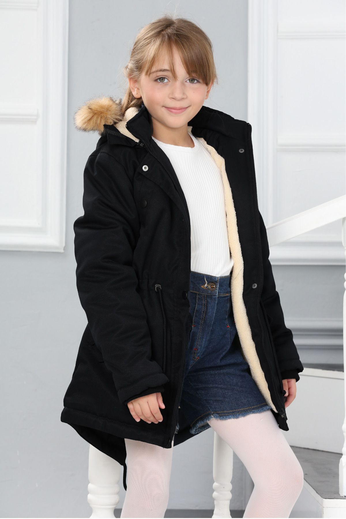خرید اینترنتی پالتو بلند ضد آب دخترانه با کلاه جداشونده و آستر خز مخمل برند Asortix اورجینال از Asortix Boutique نمایندگی ترکیه