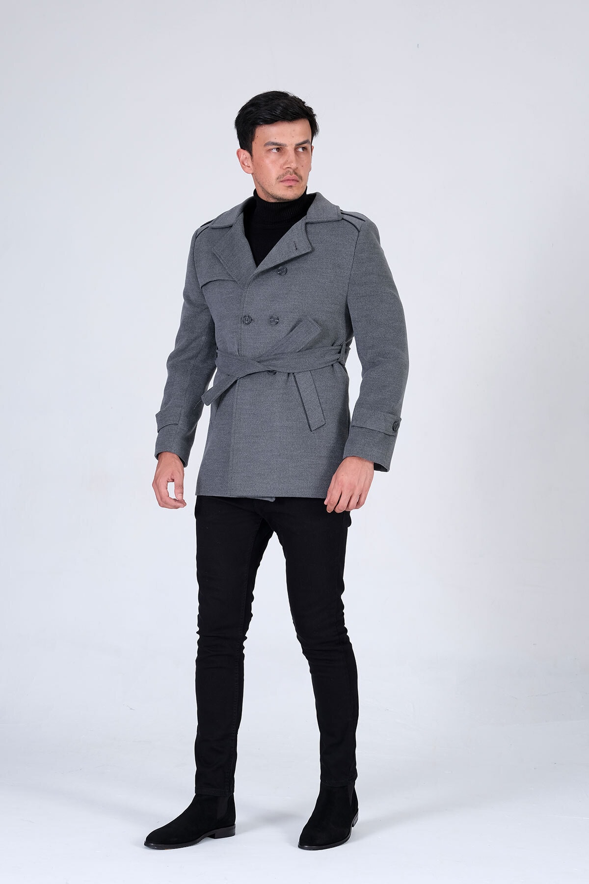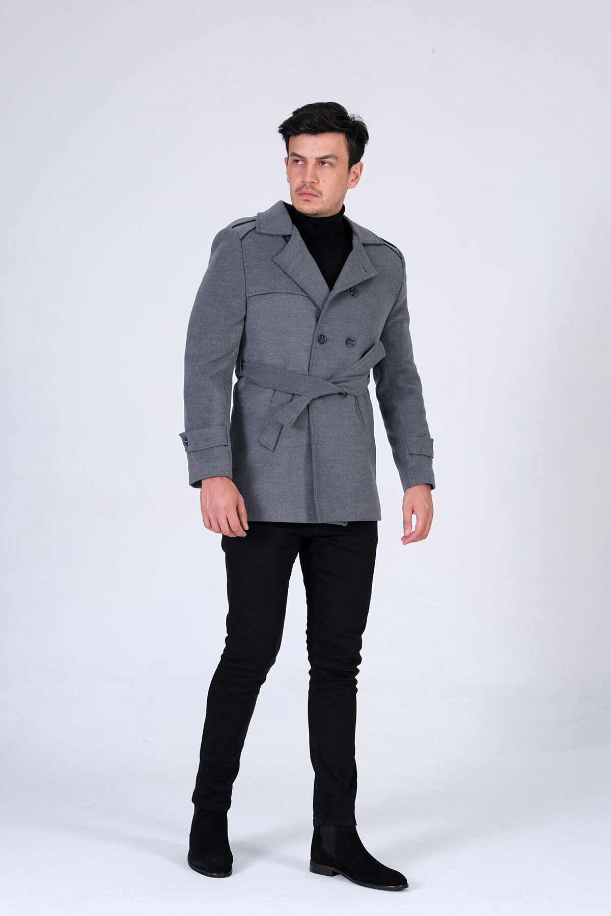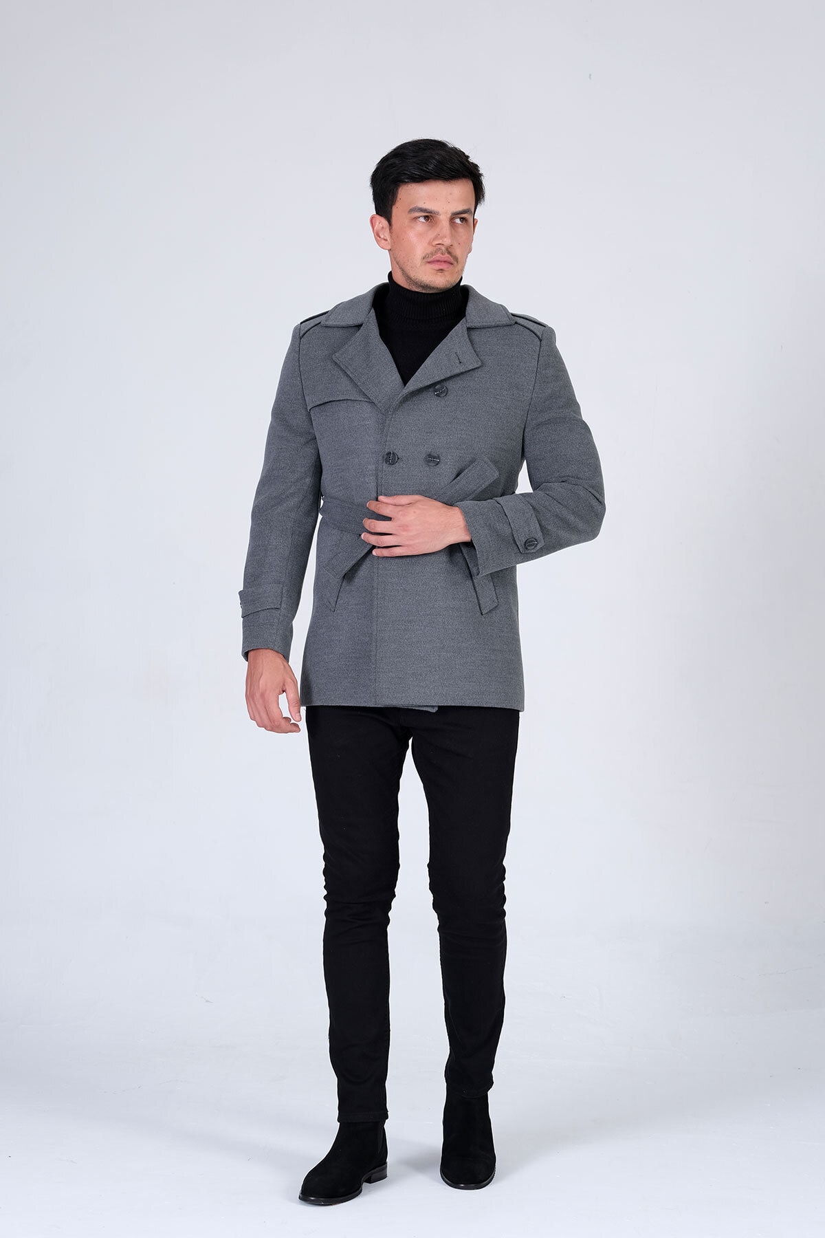خرید اینترنتی کاپشن زمستانی مردانه خاکستری اسلیم فیت، دو دکمه، کشمیری، کمربنددار برند AtakGiyim اورجینال از AtakGiyim نمایندگی ترکیه