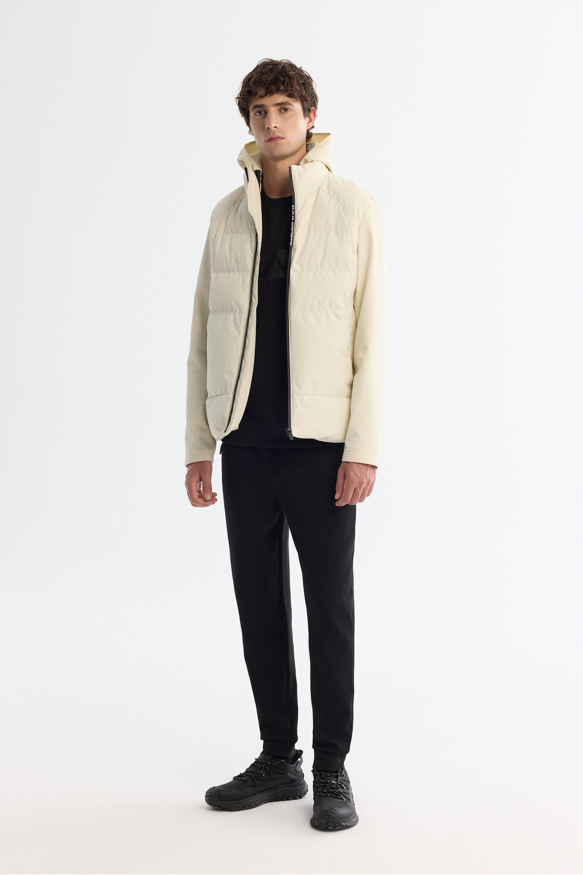 یقه کلاهدار، ضد آب، ضد باد، سبک وزن، تنفس، جلیقه پف دار قابل جابجایی، قابل استفاده به صورت مستقل یا به عنوان ژاکت، ژاکت نازک Comfort Fit