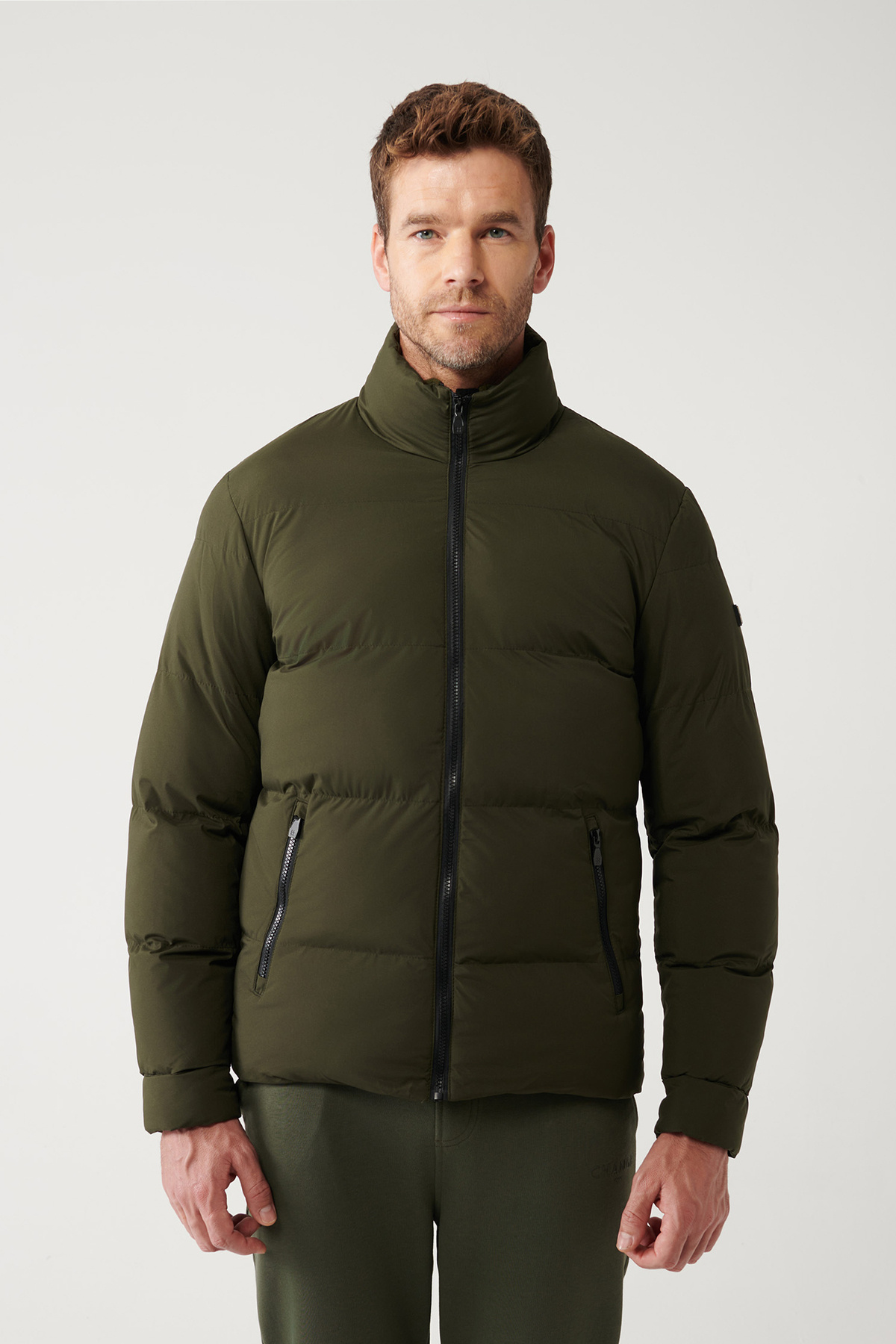 خرید اینترنتی کاپشن پافری لحافی ضد باد ضد آب یقه پایه خاکی مردانه E006012 برند آوا Avva اورجینال از Trendyol نمایندگی ترکیه