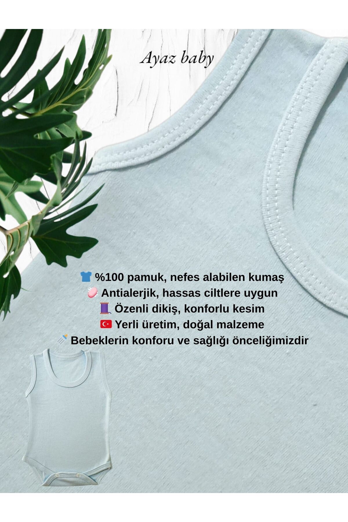 خرید اینترنتی بادی نوزادی آبی رنگ آیاز، ۱۰۰٪ پنبه، بدون آستین، چسبی برند بیبی Baby اورجینال از Ayazz Shoping نمایندگی ترکیه
