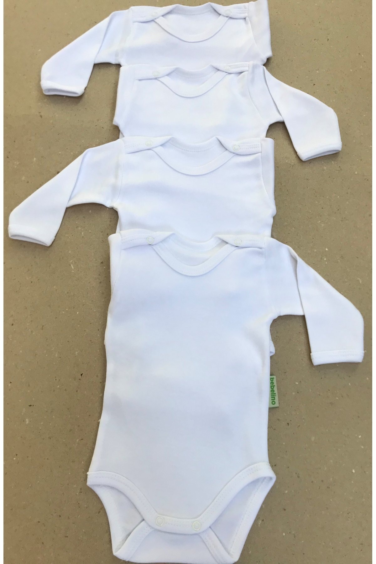خرید اینترنتی بادی نوزادی سفید چسبی آستین بلند بسته ۴ عددی برند به به دینو bebedino اورجینال از ÖZDEMİRLİ TEKSTİL نمایندگی و فروشگاه معتبر ترکیه