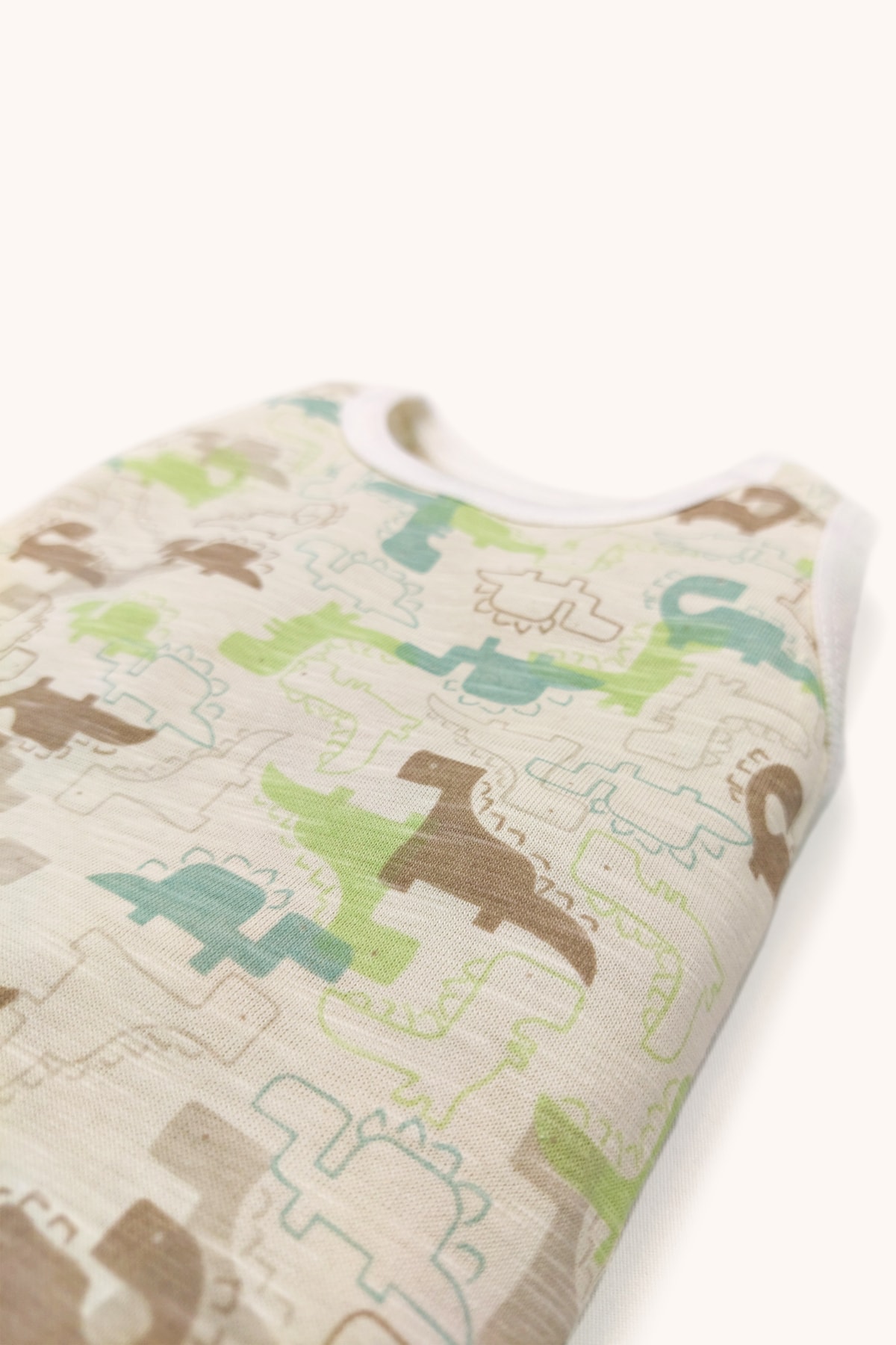 ست بادی بدون آستین طرح دایناسور و راه راه با دکمههای فشاری در پایین.