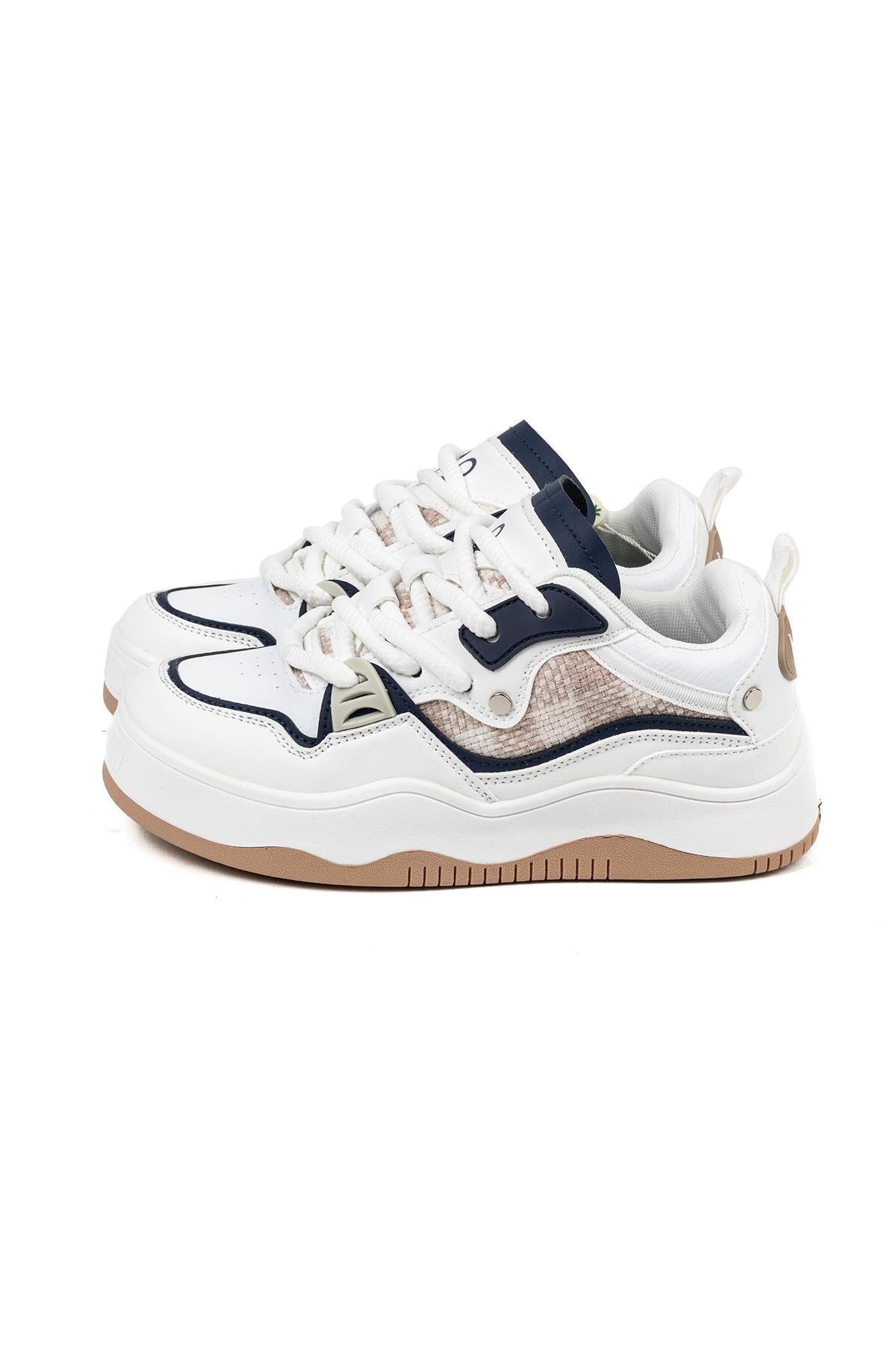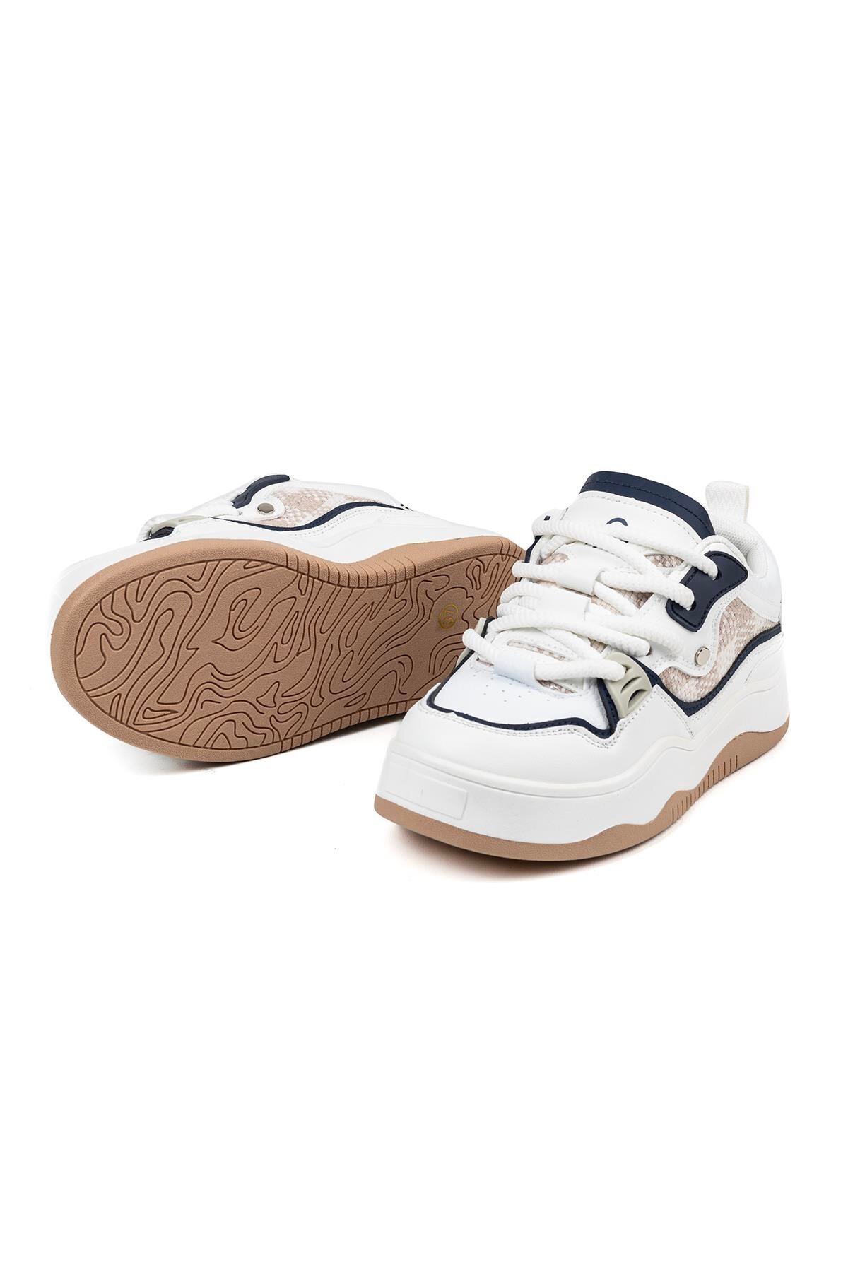 خرید اینترنتی کفشهای ورزشی زنانه سفید با کف ضخیم و جزئیات آبی سرمهای برند بنتون Benetton اورجینال از VİVENS MODA نمایندگی ترکیه