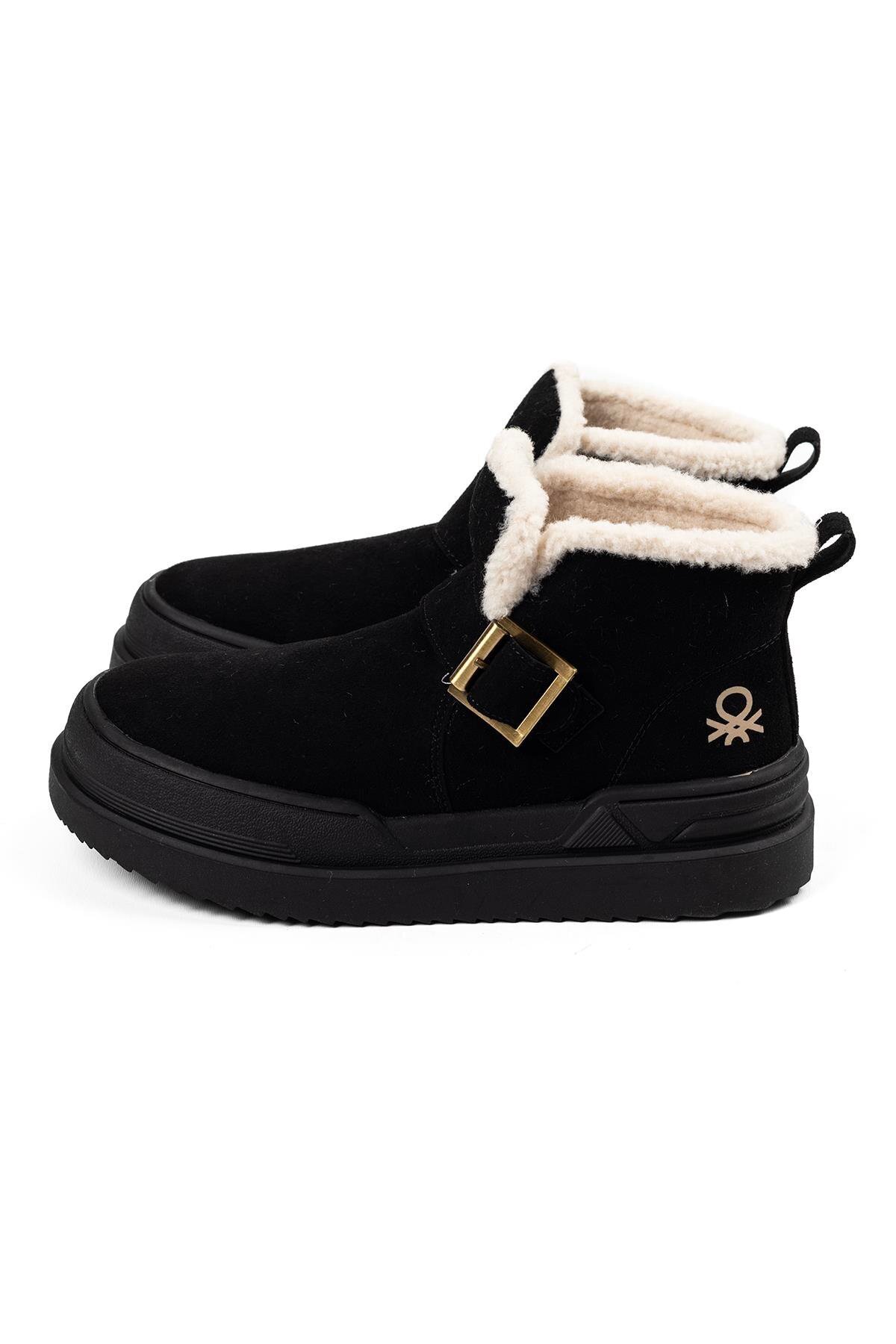 خرید اینترنتی چکمه‌های بلند مشکی، آستردار، سگک‌دار برند بنتون Benetton اورجینال از VİVENS MODA نمایندگی ترکیه