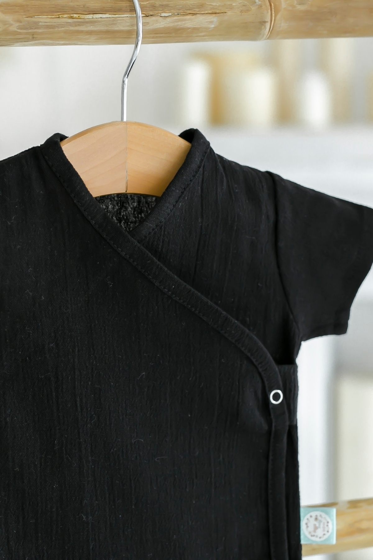 خرید اینترنتی بادی پوشک بچه مشکی پیچیده شده با پارچه ململ و دکمه دار برند بیزبیبی BeyzBaby اورجینال از Beyz Baby نمایندگی ترکیه
