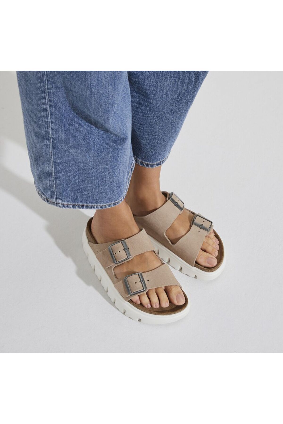 خرید اینترنتی دمپایی زنانه زیره بلند چوب پنبهای آریزونا چانکی VL جیر ماسهای بژ برند بیرکن استاک Birkenstock اورجینال از Marca Spor نمایندگی ترکیه