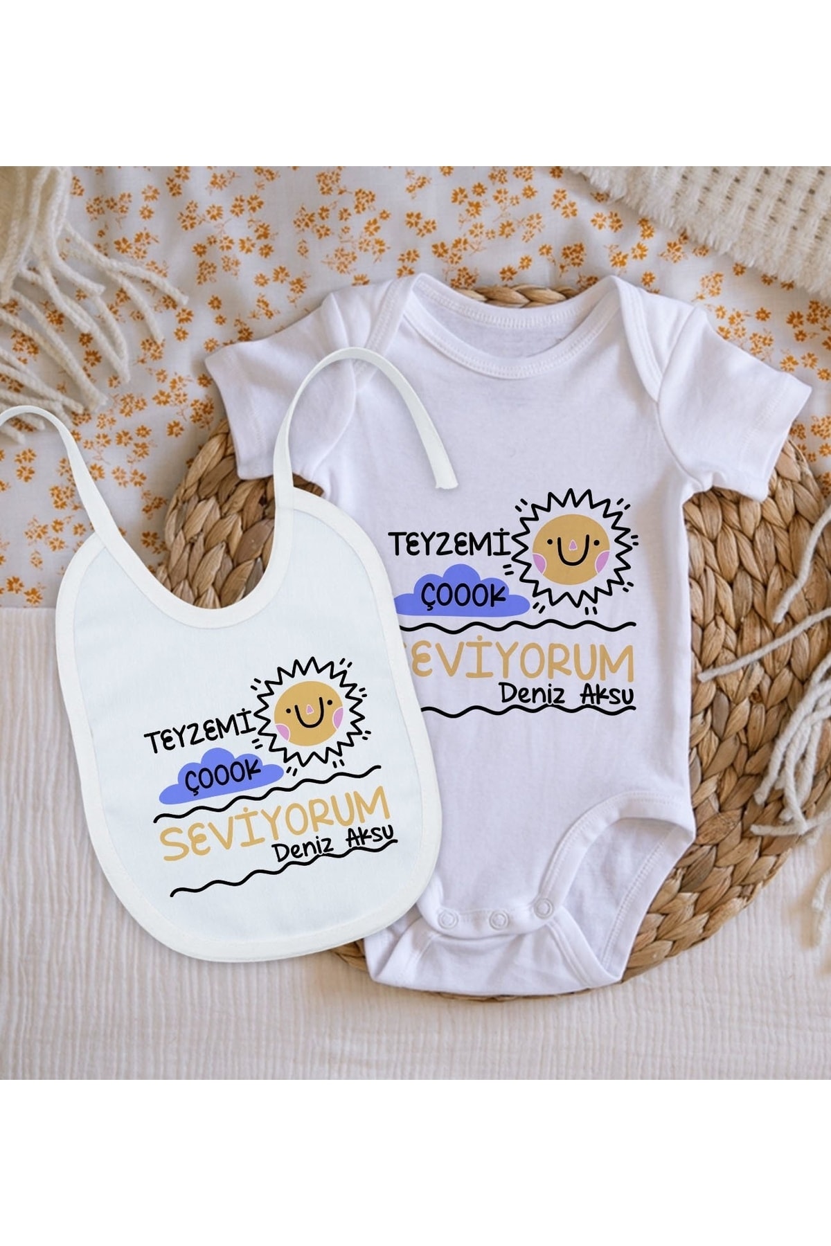 خرید اینترنتی ست هدیه بادی و پیشبند نوزادی طرح «عاشق خالهام هستم» با طرح شخصیسازیشده «مو» برند Bitmeyen Kartuş اورجینال از Bitmeyen Kartuş نمایندگی و فروشگاه معتبر ترکیه