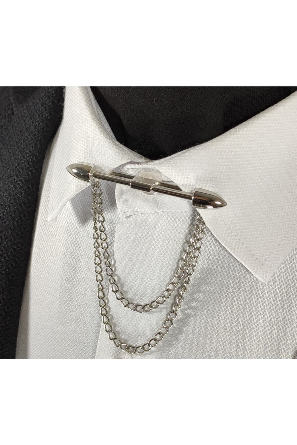 برچسب: سنجاق سینه/زنجیر یقه فلزی گیرهای نقرهای خاکستری سری Noblegrip مناسب برای همه پیراهنها مردانه