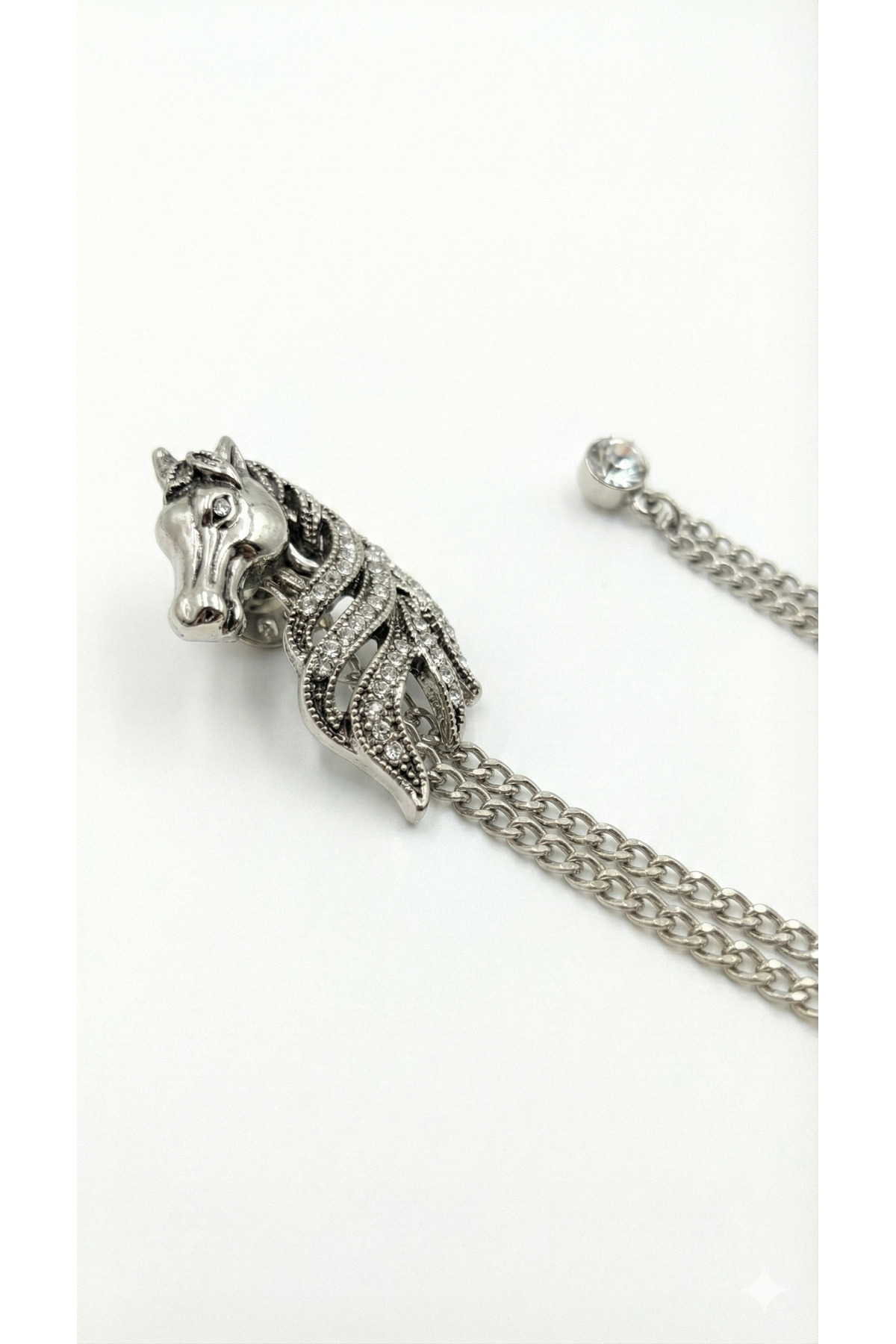 برچسب: سنجاق یقه فلزی نقرهای خاکستری طرح اسب با زنجیر یقه تزیینی سنگی مردانه