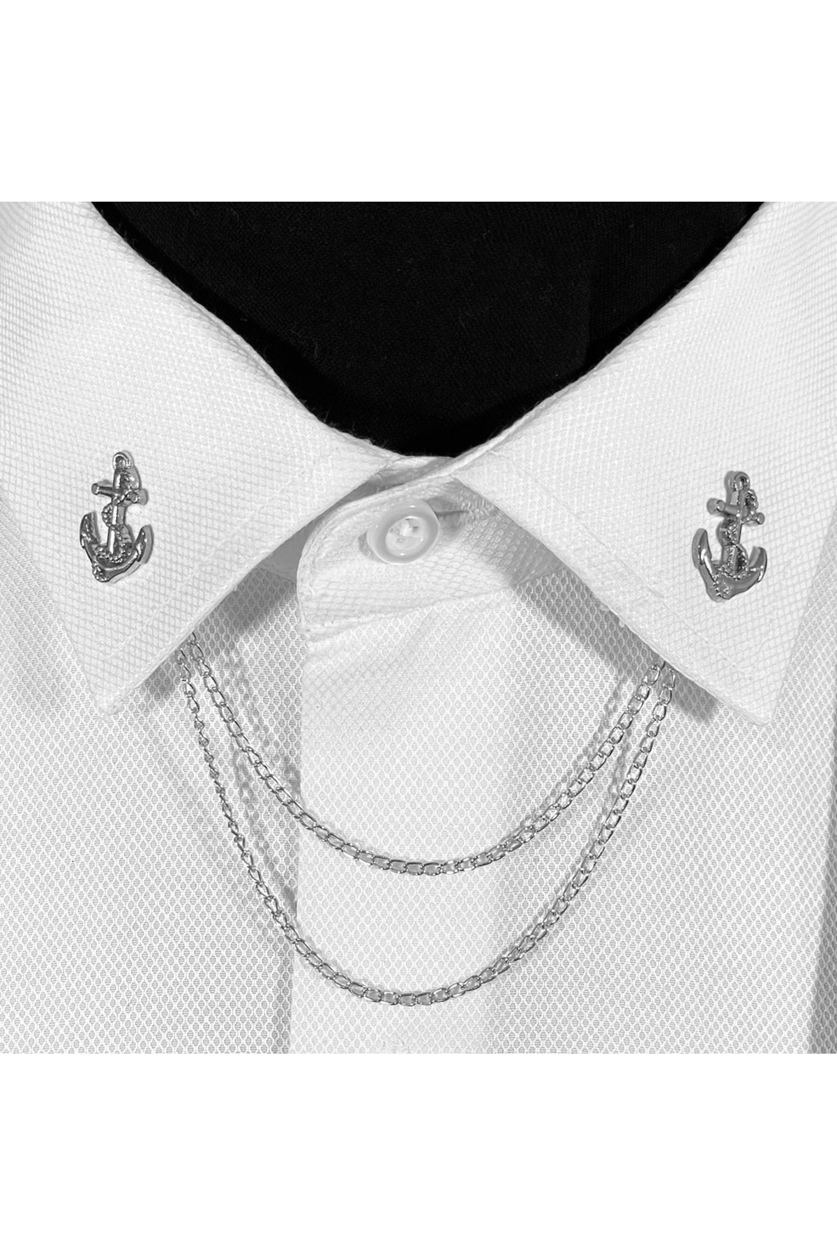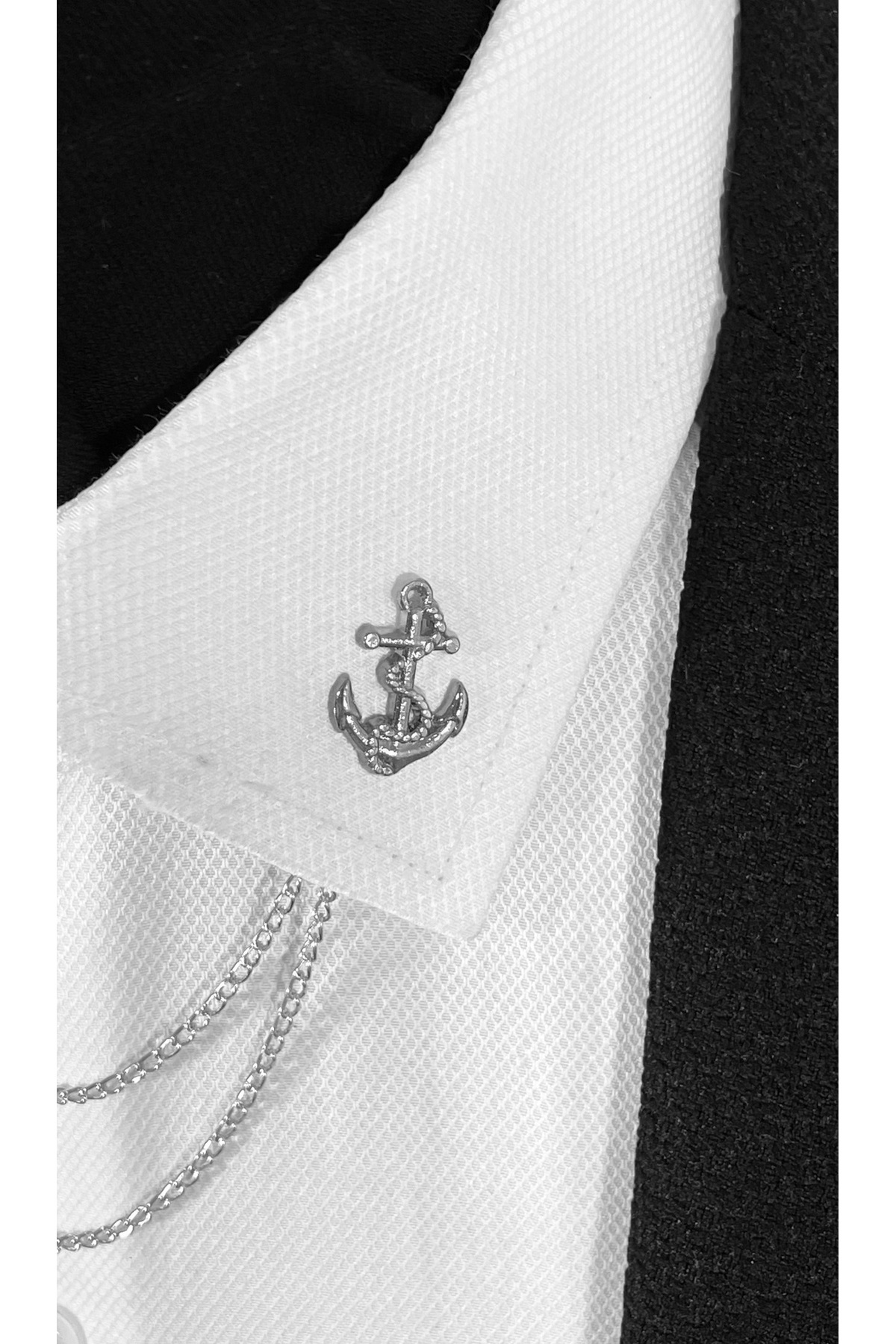 سنجاق یقه پیراهن/زنجیر یقه لنگری شکل از جنس آلیاژ روی به رنگ خاکستری مردانه Şehir & Doğa Manzaraları | BLC Basic Line Co. BLC000049