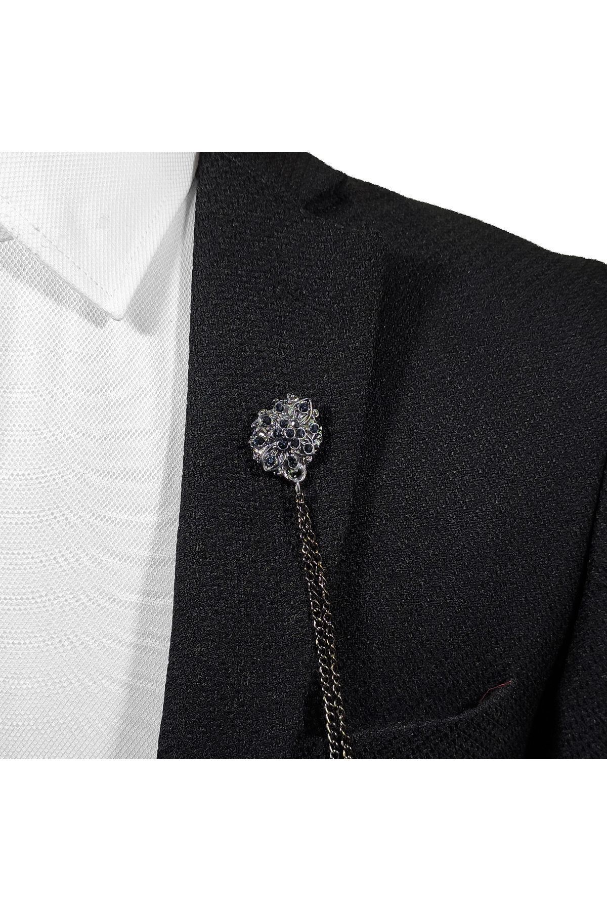 برچسب: سنجاق یقه کت با سنگ تزیین شده به رنگ آبی نفتی خاکستری و زنجیر یقه مردانه