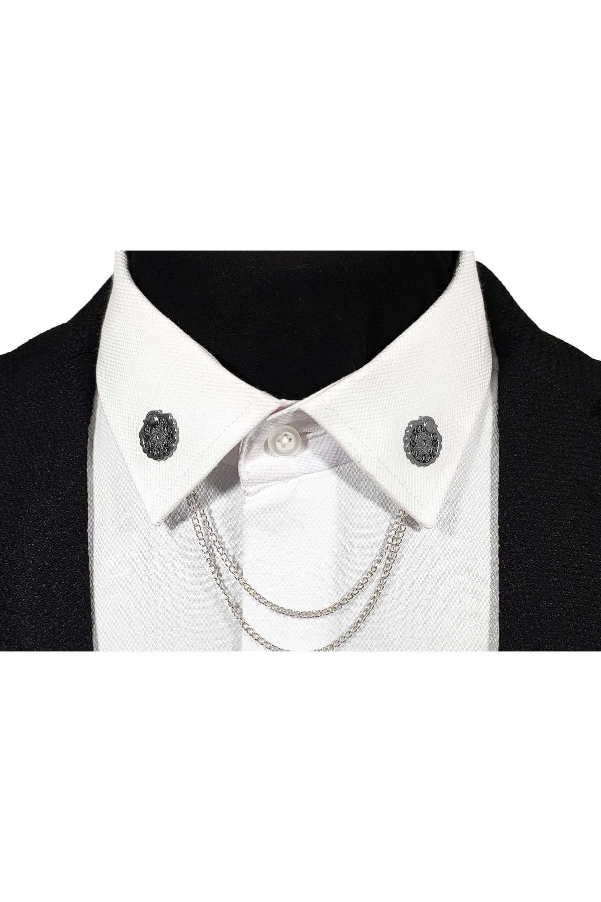 خرید اینترنتی سنجاق/زنجیر یقه پیراهن طرحدار خاکستری تیره نقرهای برند BLC Basic Line Co. اورجینال از Basic Line Co. نمایندگی و فروشگاه معتبر ترکیه