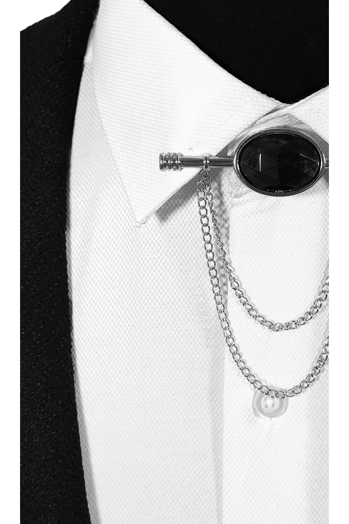 سنجاق یقه قابدار نقرهای-خاکستری با سنگهای مشکی، مناسب برای هر پیراهنی. مردانه راسته | BLC Basic Line Co. BLC000172
