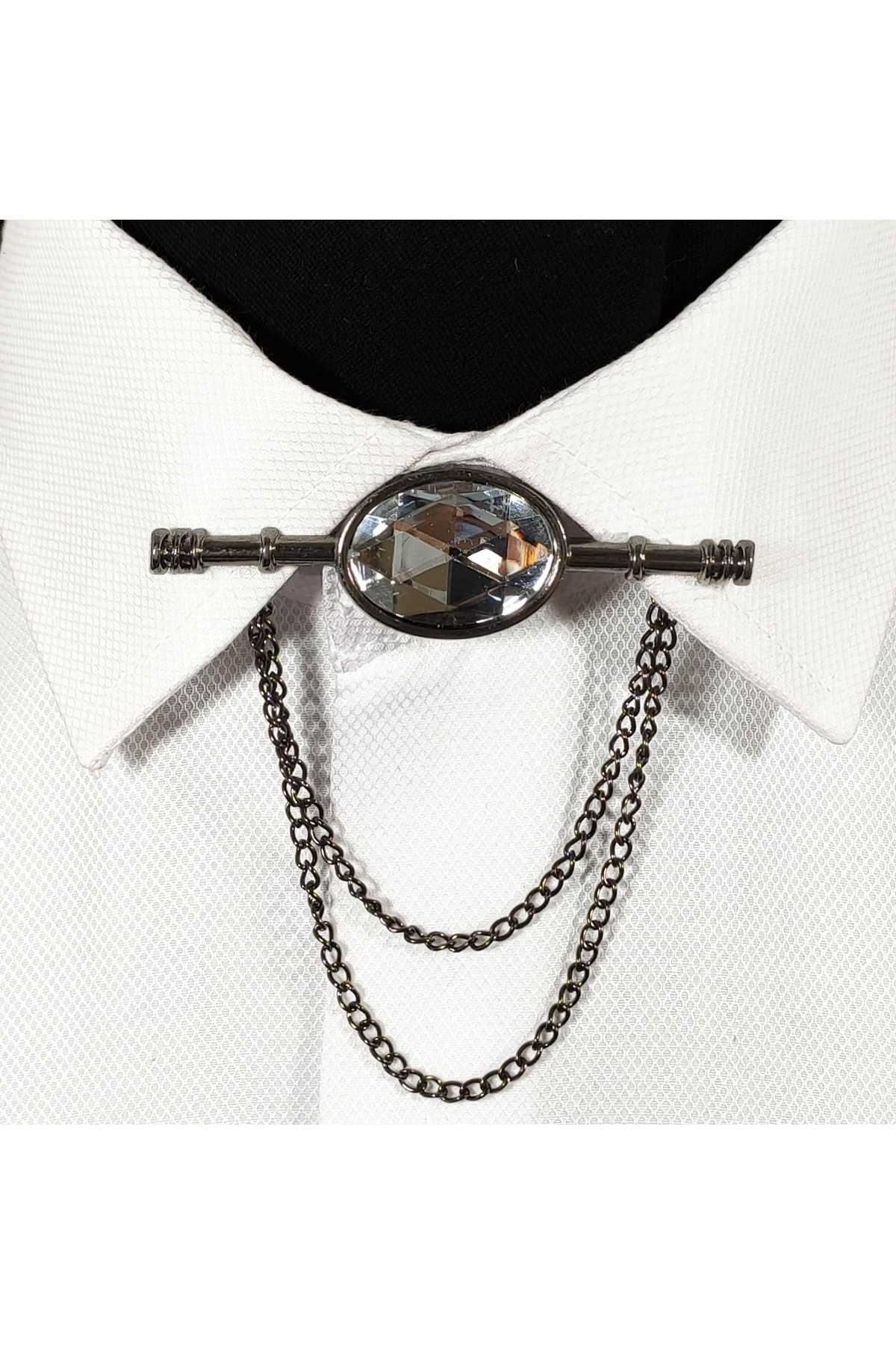 سنجاق یقه قابدار نقرهای-خاکستری تیره با سنگهای کریستالی، مناسب برای هر پیراهنی. مردانه راسته | BLC Basic Line Co. BLC000172