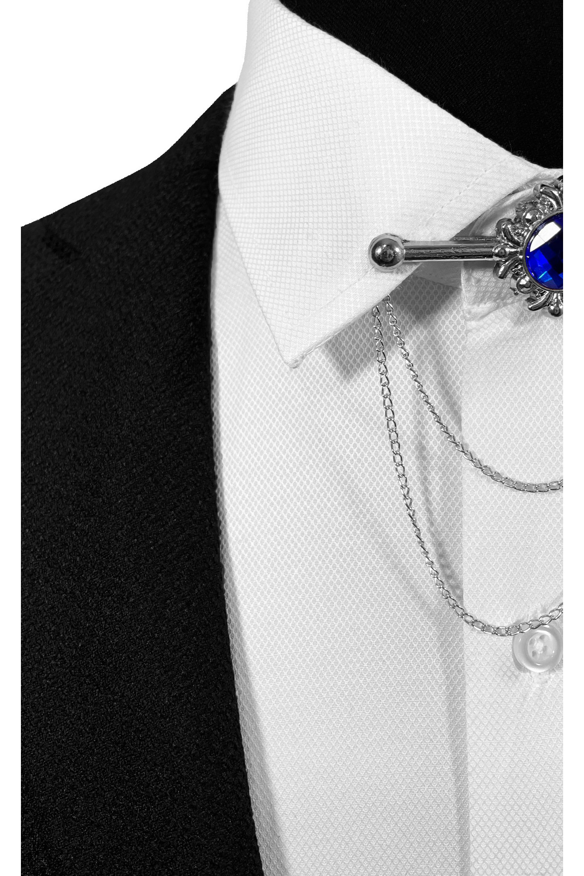 برچسب: سنجاق سینه گیرهدار/زنجیر یقهای قابدار نقرهای خاکستری با سنگ آبی، مناسب برای انواع پیراهن مردانه
