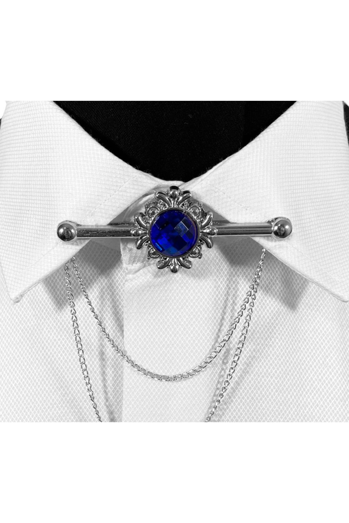 سنجاق سینه گیرهدار/زنجیر یقهای قابدار نقرهای خاکستری با سنگ آبی، مناسب برای انواع پیراهن مردانه راسته | BLC Basic Line Co. BLC000177