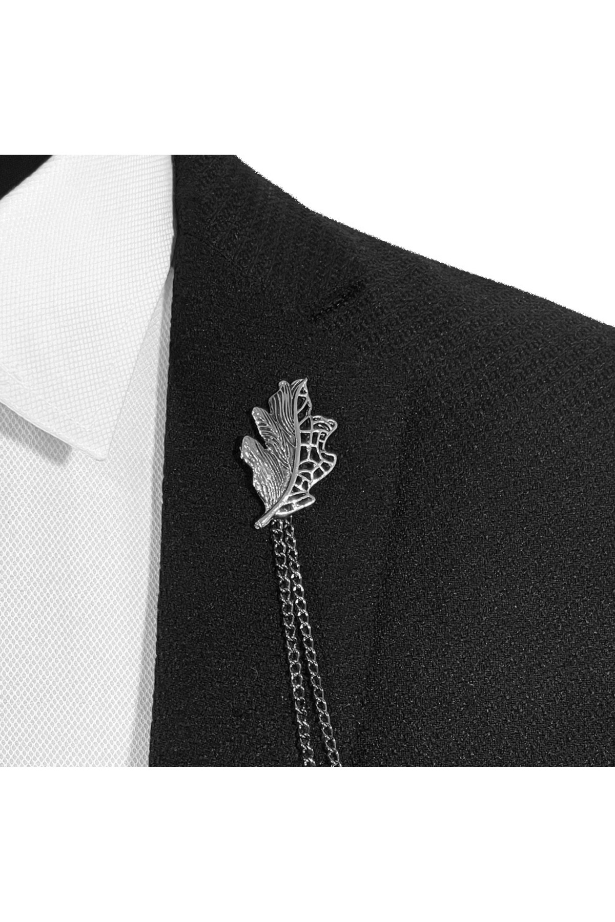 سنجاق سینه زنجیری یقه برگردان طرح برگ سری پریمیوم به رنگ نقرهای تیره و خاکستری مردانه گلدار | BLC Basic Line Co. BLC000190