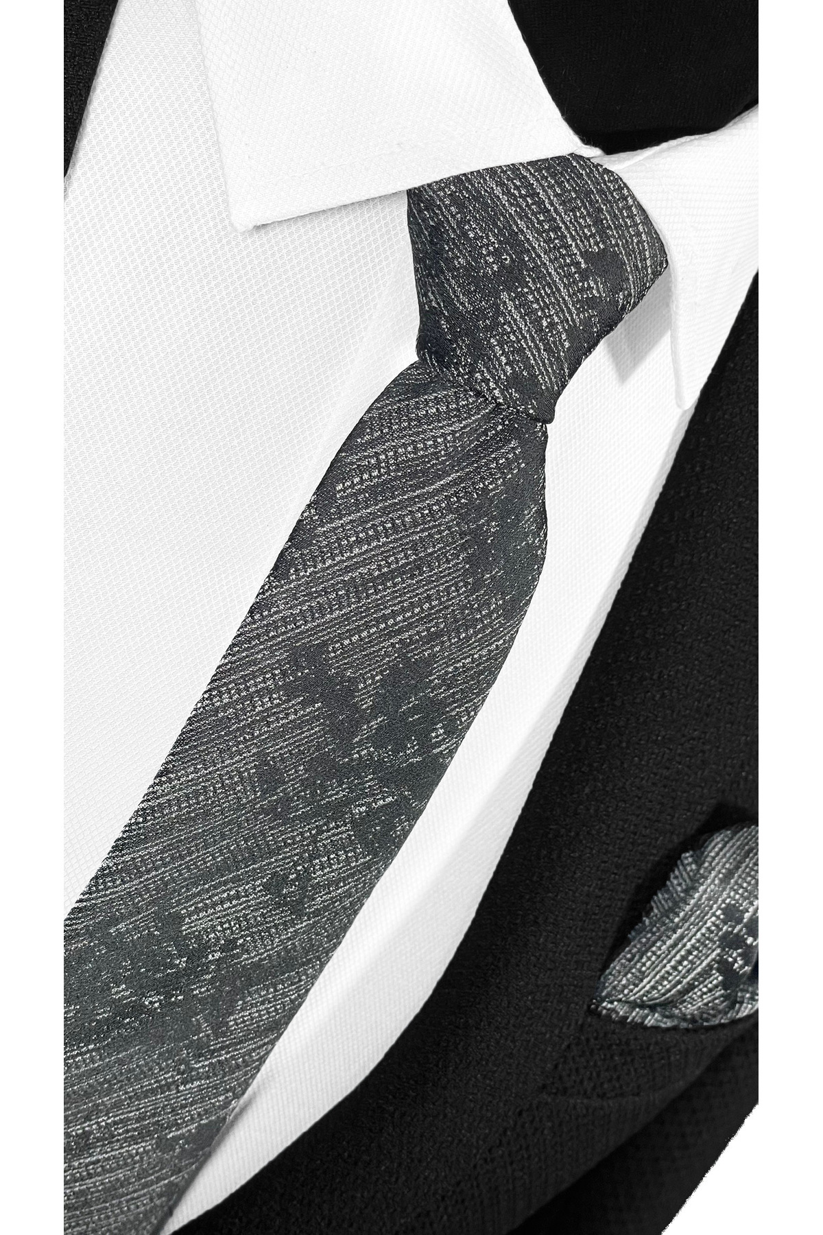 خرید اینترنتی ست کراوات و دستمال جیبی کلاسیک میکروفایبر خالدار مشکی و خاکستری – 7 سانتیمتر برند BLC Basic Line Co. اورجینال از Basic Line Co. نمایندگی ترکیه