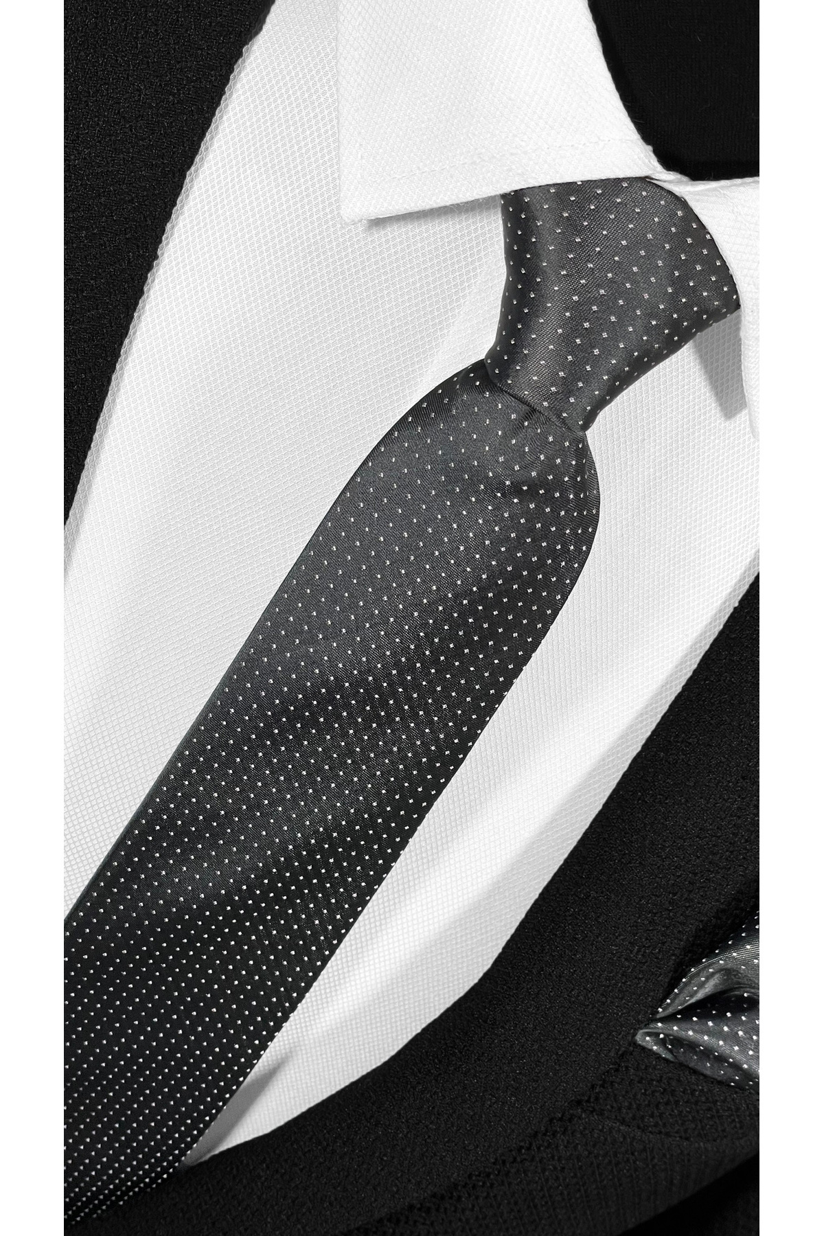 خرید اینترنتی ست کراوات و دستمال جیبی میکروفایبر خالدار خاکستری و سفید آنتراسیت – برش مدرن 7 سانتیمتری برند BLC Basic Line Co. اورجینال از Basic Line Co. نمایندگی و فروشگاه معتبر ترکیه