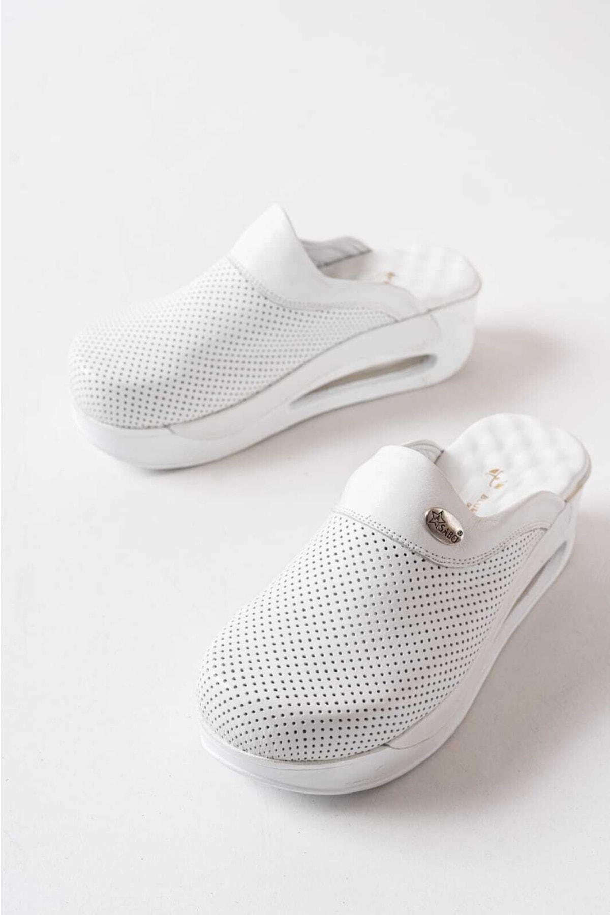 خرید اینترنتی دمپایی طبی زنانه سابو با ساختار آناتومیک و چرم اصل سفید برند BLUMSABOTERLİK اورجینال از MEDİKAL SABO TERLİK نمایندگی ترکیه