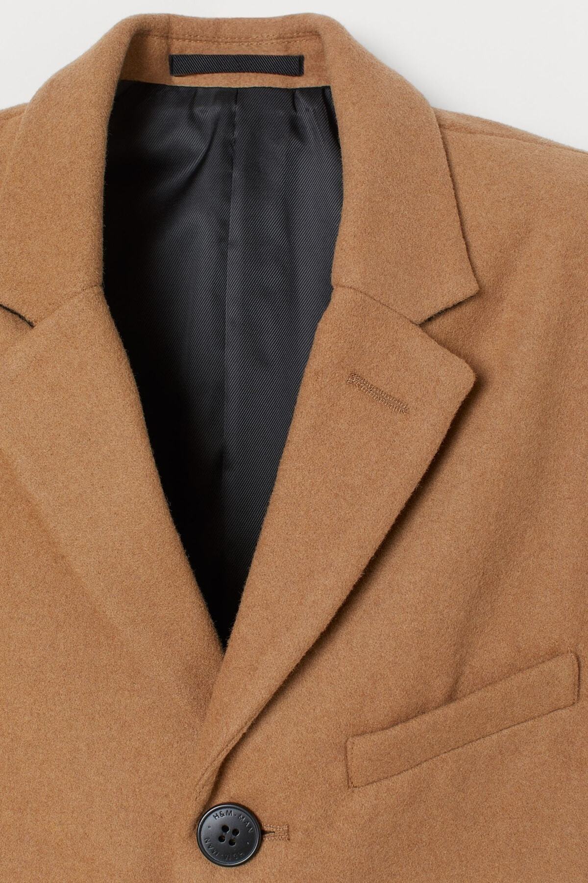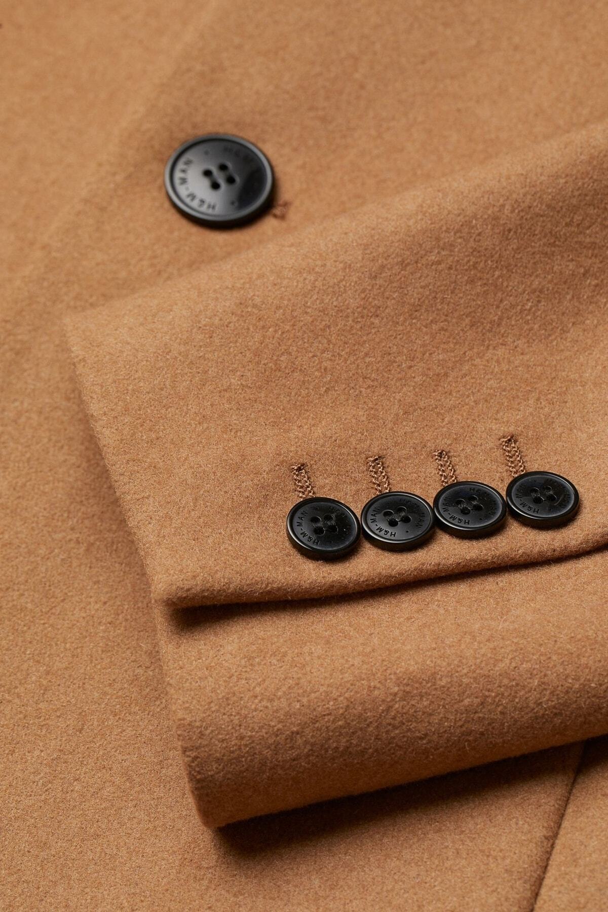 کت شیک ساخته شده از پارچه ترکیبی پشمی با یقه برگردان و یک جا دکمه تزئینی. سه دکمه در جلو، یک جیب روی سینه، جیبهای مورب کناری و دو جیب داخلی، یکی در هر طرف. دکمههای تزئینی سرآستین، یک چاک در پشت و آستر.
