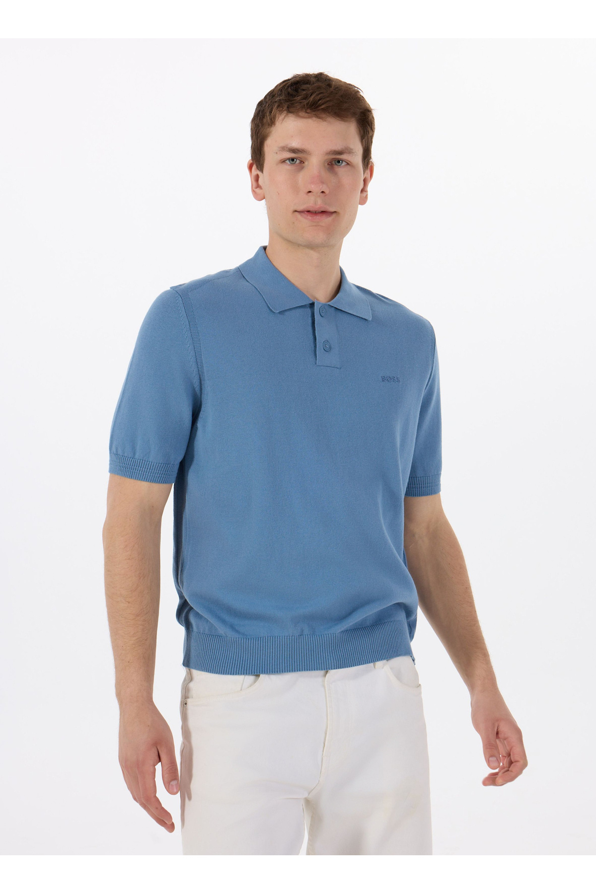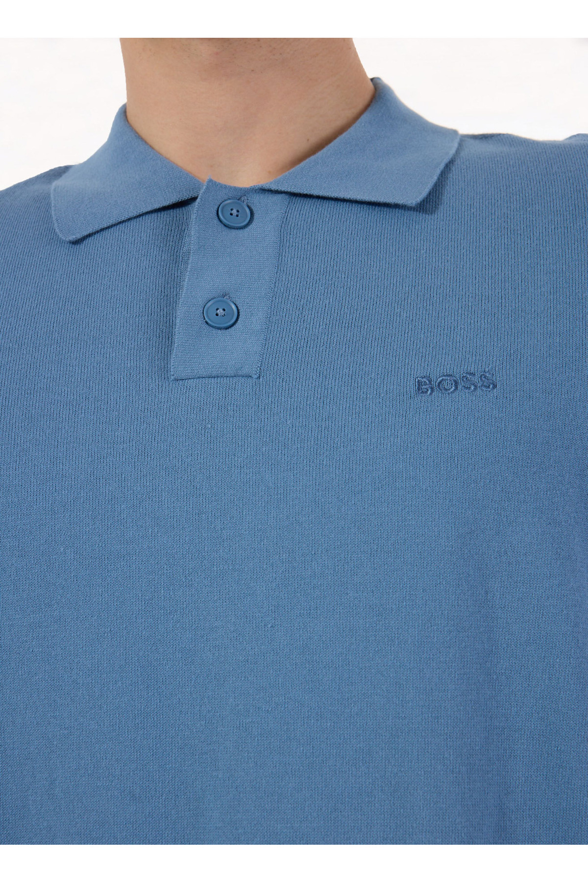 پلیور مردانه آبی رنگ یقه پولو Boss مدل Asac_P، سایز معمولی، رده سنی: مردانه، جنسیت: مردانه، اطلاعات الگو: سایز معمولی