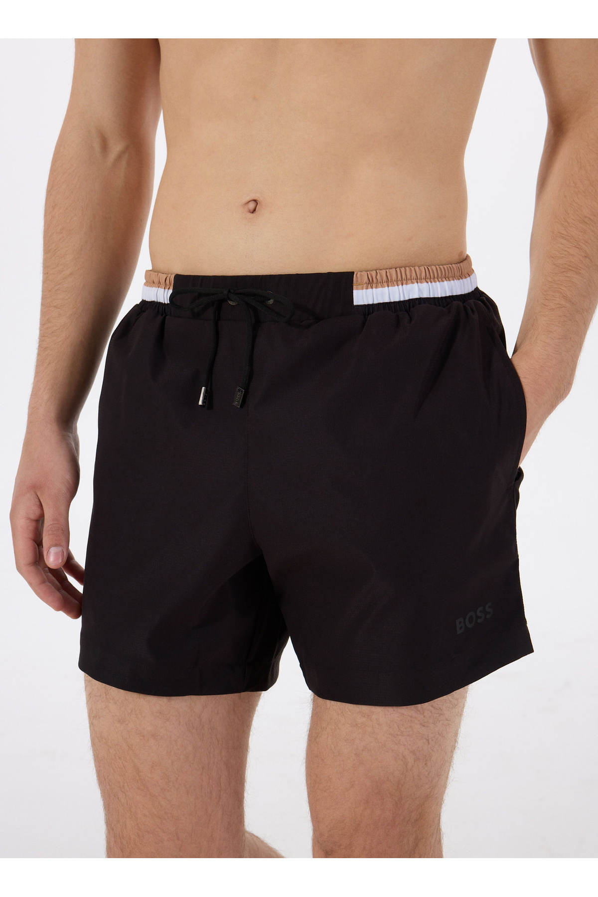 خرید اینترنتی شلوارک شنا مردانه طرحدار، کمر کشی، فاق بلند، اسلیم فیت، مشکی، کد ۵۰۴۶۹۳۲۴-۰۰۱ برند باس BOSS اورجینال از BOYNER نمایندگی و فروشگاه معتبر ترکیه