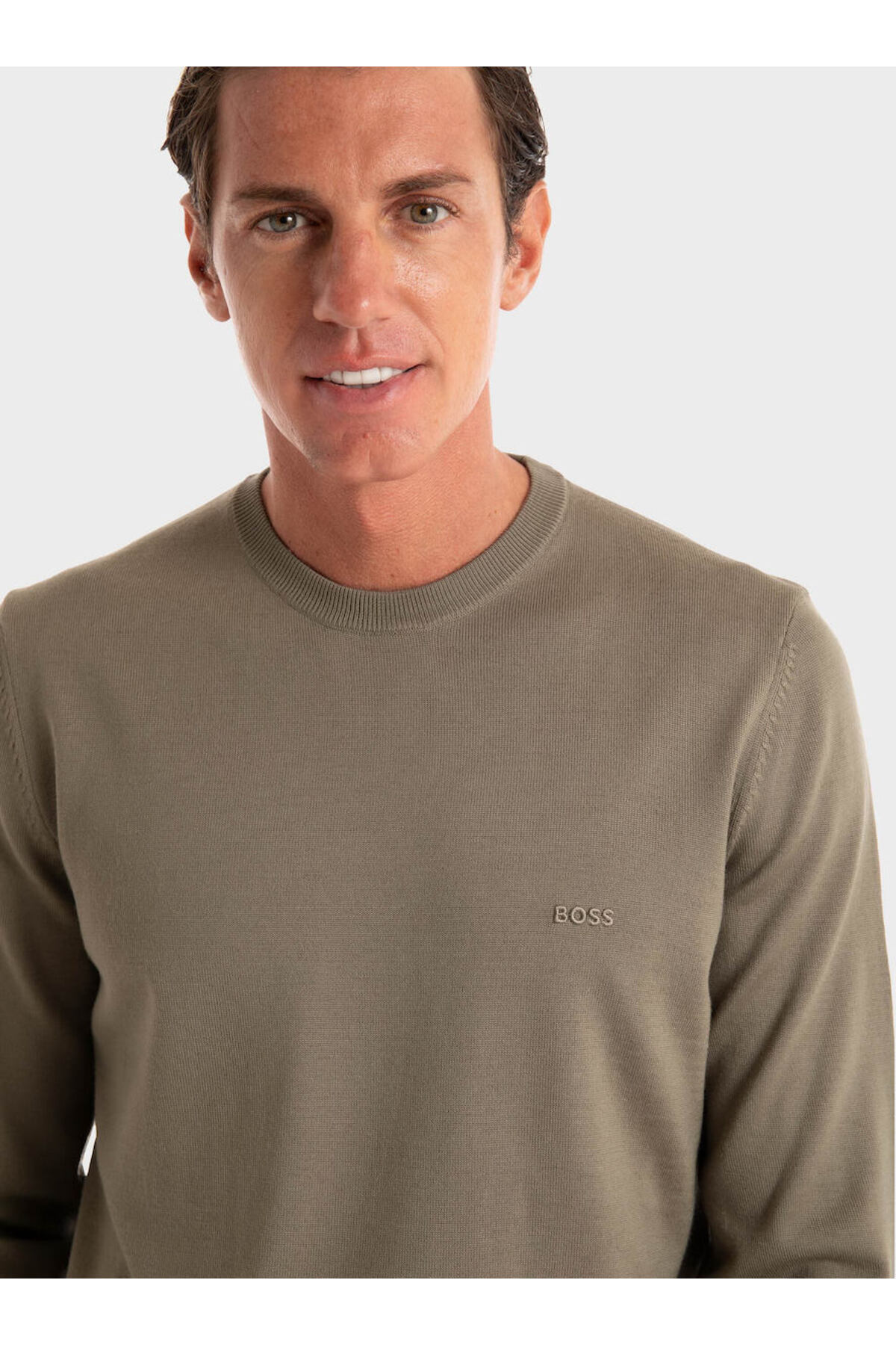 خرید اینترنتی ژاکت پشمی یقه گرد مردانه قهوهای ساده ۵۰۴۷۶۳۶۴-۲۴۵ برند باس BOSS اورجینال از Wejaar نمایندگی ترکیه