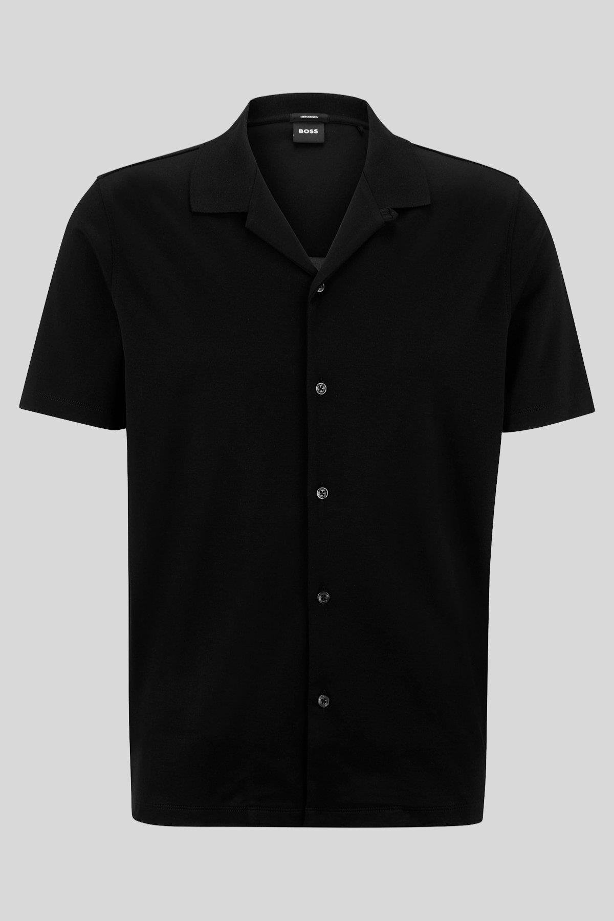 خرید اینترنتی پیراهن مردانه آستین کوتاه یقه باز معمولی مشکی برند باس BOSS اورجینال از Hello Emilio نمایندگی ترکیه