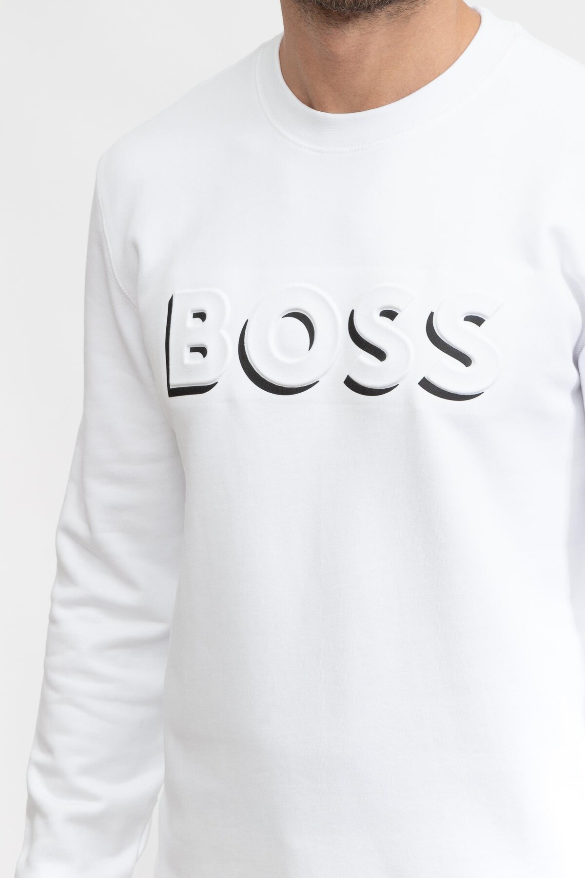 خرید اینترنتی سویشرت مردانه یقه گرد آستین بلند سفید با لوگوی برند، کد ۵۰۴۸۹۶۰۰-۱۰۰ برند باس BOSS اورجینال از Wejaar نمایندگی و فروشگاه معتبر ترکیه