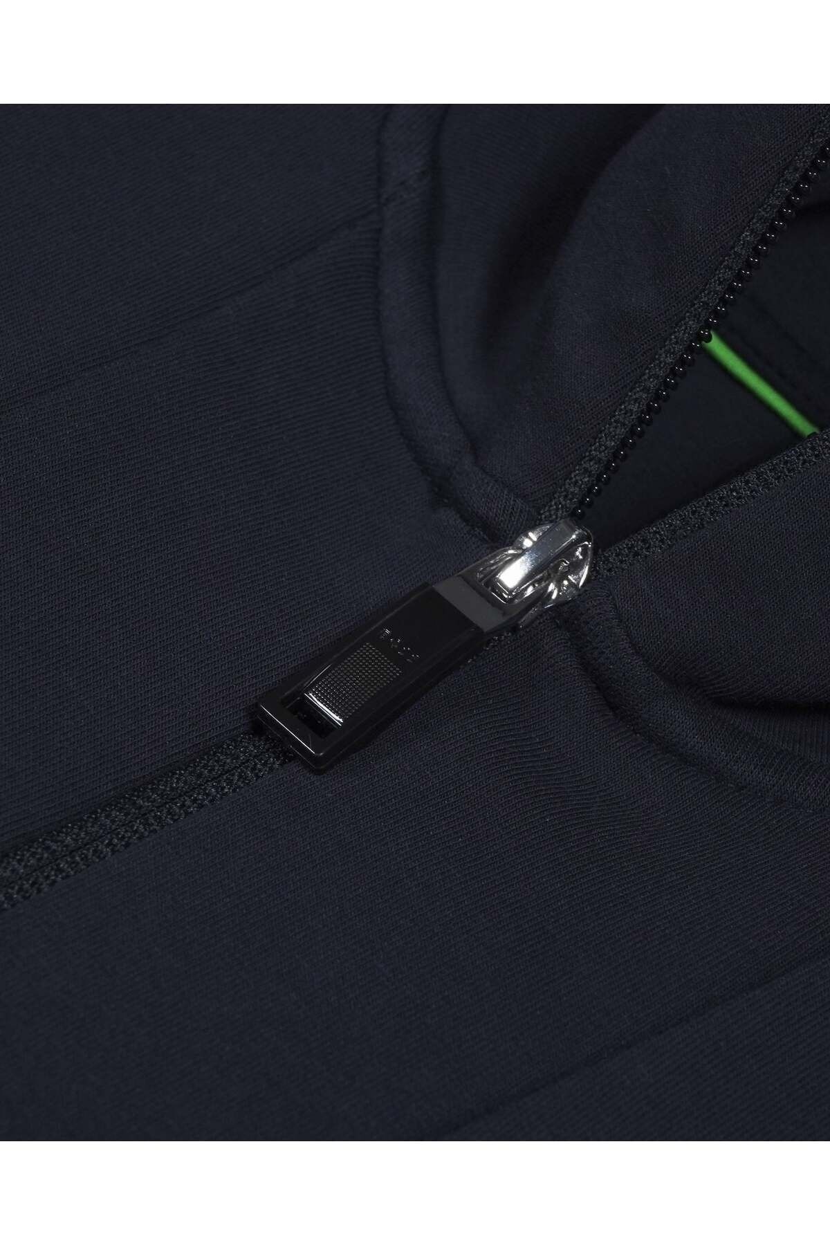 خرید اینترنتی سویشرت آستین بلند زیپدار مردانه به رنگ سرمهای با لوگوی برند ۵۰۴۹۳۴۷۰-۴۰۲ برند باس BOSS اورجینال از Wejaar نمایندگی و فروشگاه معتبر ترکیه