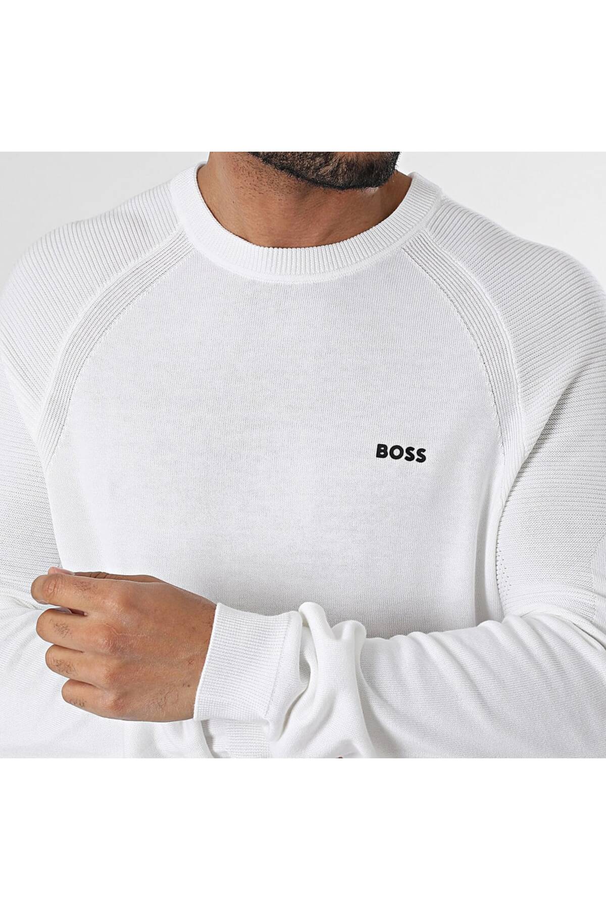 خرید اینترنتی ژاکت مردانه آستین بلند طرح لوگو برند، سفید، اسلیم فیت، کد ۵۰۵۲۸۷۳۹-۱۰۰ برند باس BOSS اورجینال از Wejaar نمایندگی ترکیه