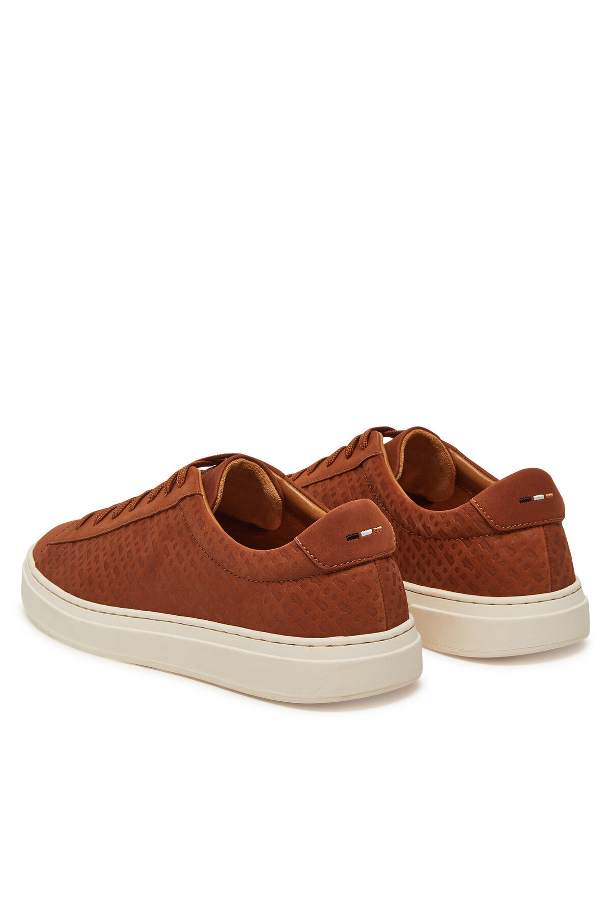 خرید اینترنتی کفش مردانه تخت و راحت، کف قهوهای با طرح لوگوی مونوگرام روی سطح رویه 50542092-212 برند باس BOSS اورجینال از Wejaar نمایندگی و فروشگاه معتبر ترکیه